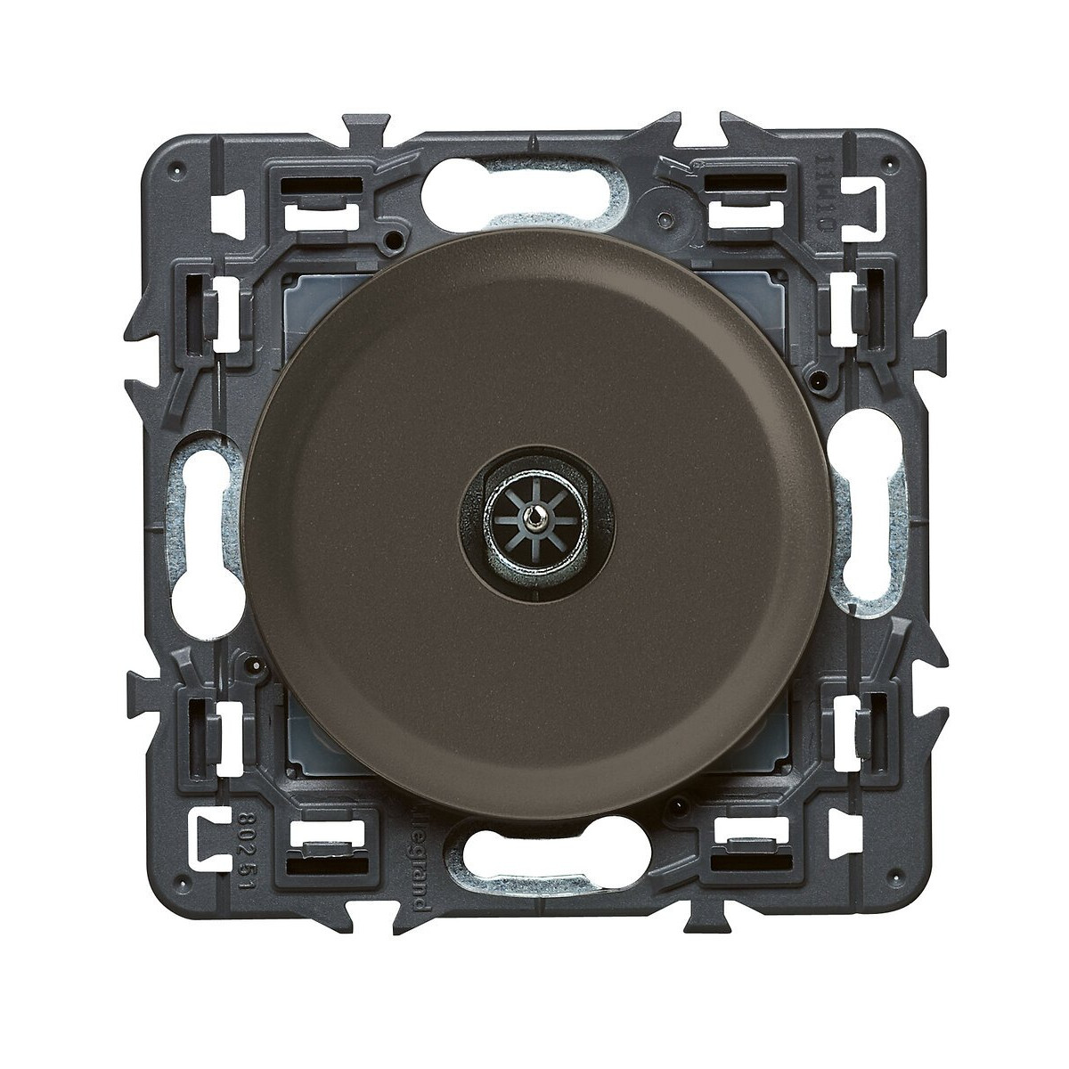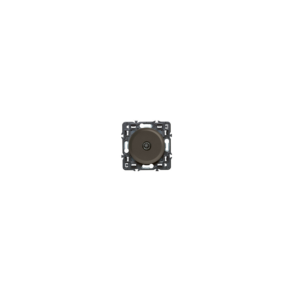Prise TV simple mâle Céliane - Graphite. La prise TV Céliane Graphite permet de connecter tous types de téléviseurs avec une qualité ultra haute définition (UHD). Cette prise a été conçue pour une insertion intuitive du câble. La connexion au bornier se fait facilement et rapidement. Afin de permettre un refoulement plus facile dans la boîte, le bornier a été placé au centre du mécanisme. Enfin la visualisation de la connexion permet de savoir avec certitude si le câble est bien serré.Spécifications techniques