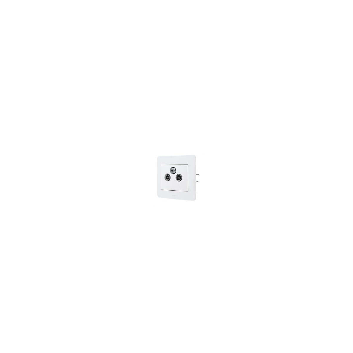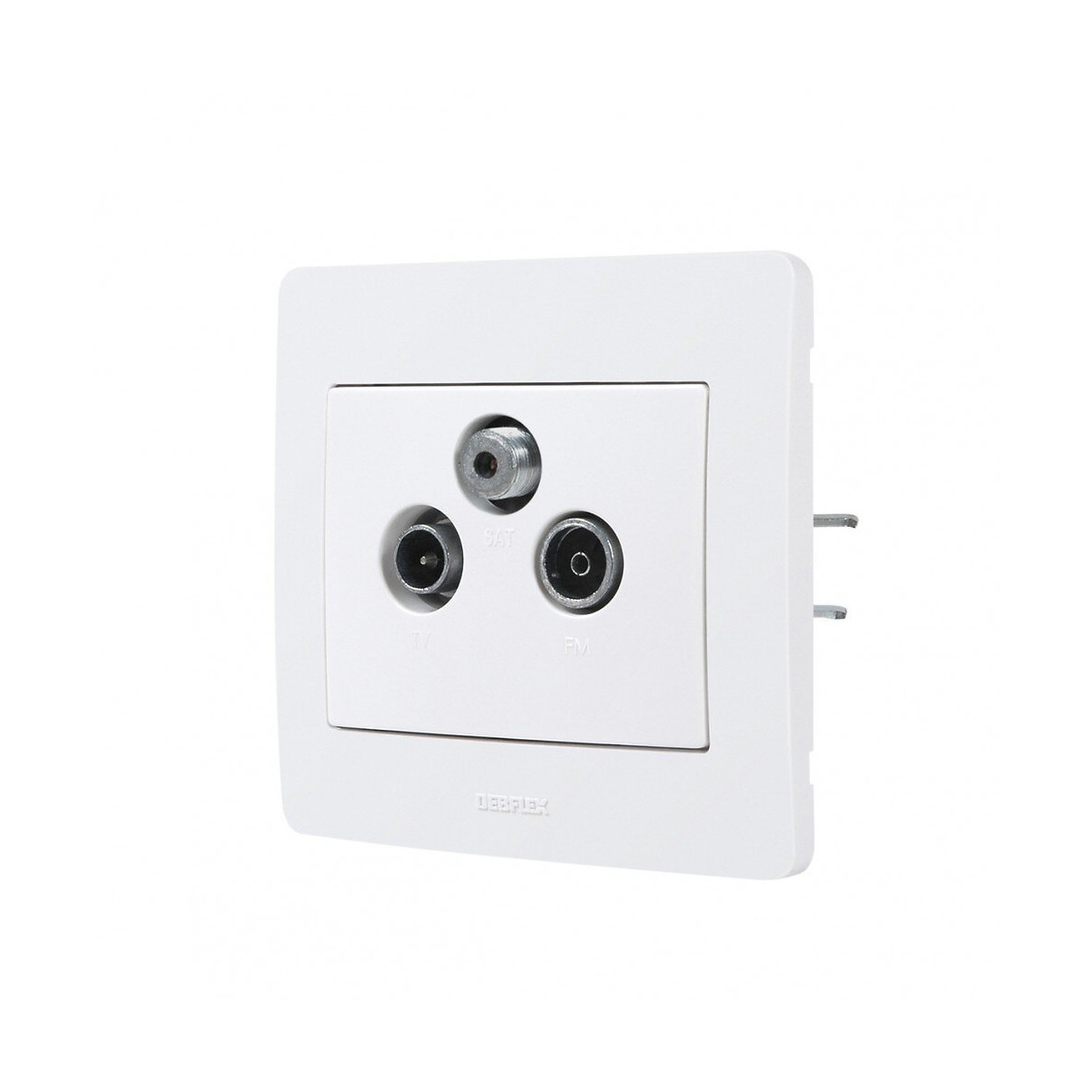 APPAREILLAGE ENCASTRE GAMME DIAM2 PRISE TV-FM-SAT BLANC Nom du produit: Prise TV / FM / SAT Marque du produit: DEBFLEX Nom de la série: Diam2 Type de produit: Complet Couleur: Blanc Finition du produit: Mat Type de fixation: A vis et à griffes Hauteur (en mm): 85 Largeur (en mm): 95 Profondeur (en mm): 40 Garantie (en années): 2 Indication du geste de tri (triman): Non Produit emballé : poids (en kg): 0.09 Produit emballé : largeur (en cm): 9.5 Produit emballé : hauteur (en cm): 8.5 Produit emballé : profondeur (en cm): 4