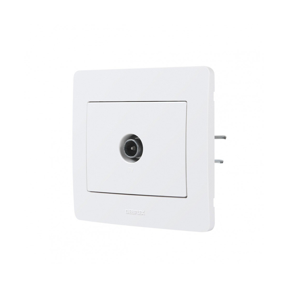 APPAREILLAGE ENCASTRE GAMME DIAM2 PRISE TV BLANC Nom du produit: Prise TV Marque du produit: DEBFLEX Nom de la série: Diam2 Type de produit: Complet Couleur: Blanc Finition du produit: Mat Type de fixation: A vis et à griffes Hauteur (en mm): 85 Largeur (en mm): 95 Profondeur (en mm): 40 Garantie (en années): 2 Indication du geste de tri (triman): Non Produit emballé : poids (en kg): 0.084 Produit emballé : largeur (en cm): 9.5 Produit emballé : hauteur (en cm): 8.5 Produit emballé : profondeur (en cm): 4