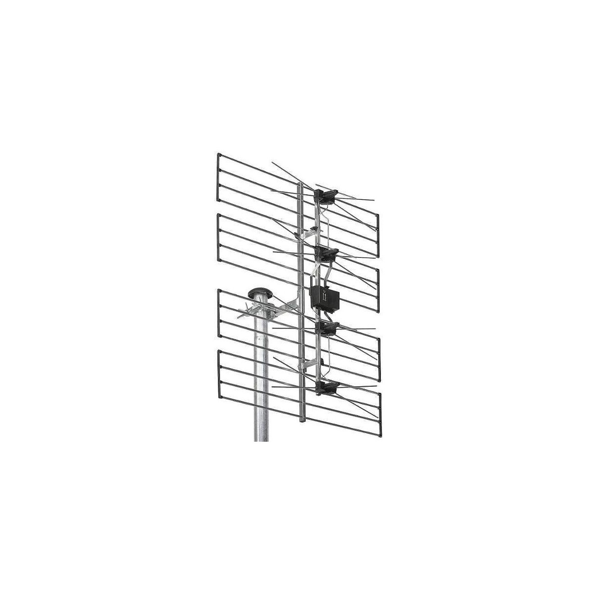Antenne UHF de type Panneaux - 41 éléments - Canaux 21 - 69 - Gain : 14,5 dB - Rapport AV/AR : > 25 dB - Montage Vert./horiz. - Connectique F + protection - Dimensions : 645 x 830 x 260 mm.