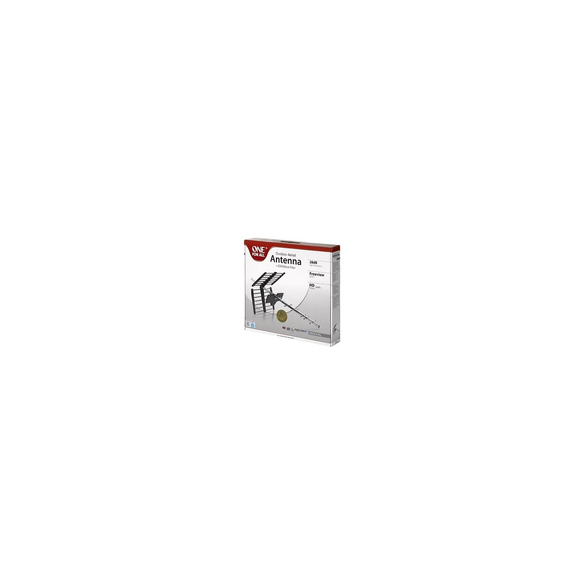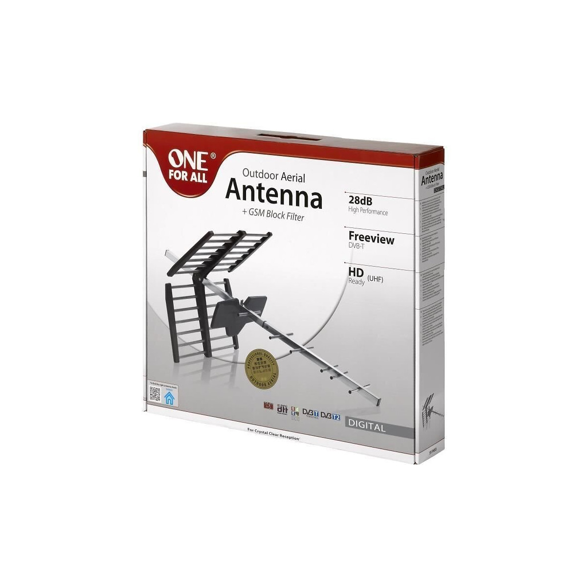 ONE FOR ALL SV 9453 Antenne extérieure - Amplifiee 28dB - Filtre blocage GSM - Compatible HD - 100% étanche - Impédance: 75 Ohms - Fréquence: 460-862MHz - Gain: 15-20dB - Largeur de faisceau: H35°-50°/ V40°-55° - Câble coaxial (10 m) et les connecteurs inclus - Garantie du fabricant 2 ans
