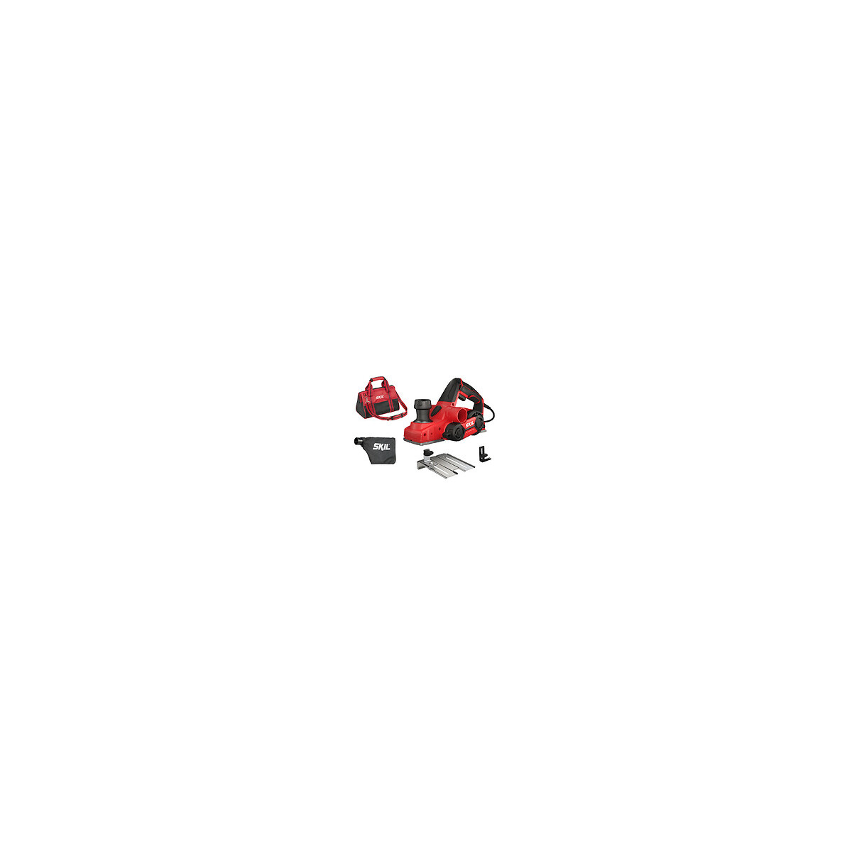 Rabot maniable pour une finition impeccable Avec son puissant moteur de 710 W, le rabot SKIL 1590 est idéal pour l’égalisation des surfaces, le chanfreinage des angles et la réalisation de feuillures. La forme ergonomique avec poignée bi-matière et grande molette de réglage de profondeur pouvant faire office de poignée avant supplémentaire garantissent une maîtrise parfaite et un confort optimal. Les fers TCT de grande qualité sont réversibles, ce qui double leur durée de vie. Après usure d’une des faces, il suffit de retourner le fer pour continuer de travailler. Un levier permet de régler facilement le sens d’éjection des copeaux vers la gauche ou vers la droite en fonction de la situation de travail. Il est possible de raccorder le sac à poussière ou un aspirateur standard à l’un des deux côtés du rabot pour un environnement de travail plus propre. Le patin de repos pratique prévient tout endommagement accidentel de la pièce à travailler lorsque le rabot est placé sur le côté durant ou après le travail. Le rabot SKIL 1590 DA est fourni dans un sac de transport avec un sac à poussière, un guide parallèle et un guide de profondeur de feuillure. Puissance absorbée : 710 W Largeur de rabotage : 82 mm Profondeur de passe : 0-2 mm Profondeur de feuillure : 8 mm Vitesse à vide : 16000 tr/min.Spécifications techniques