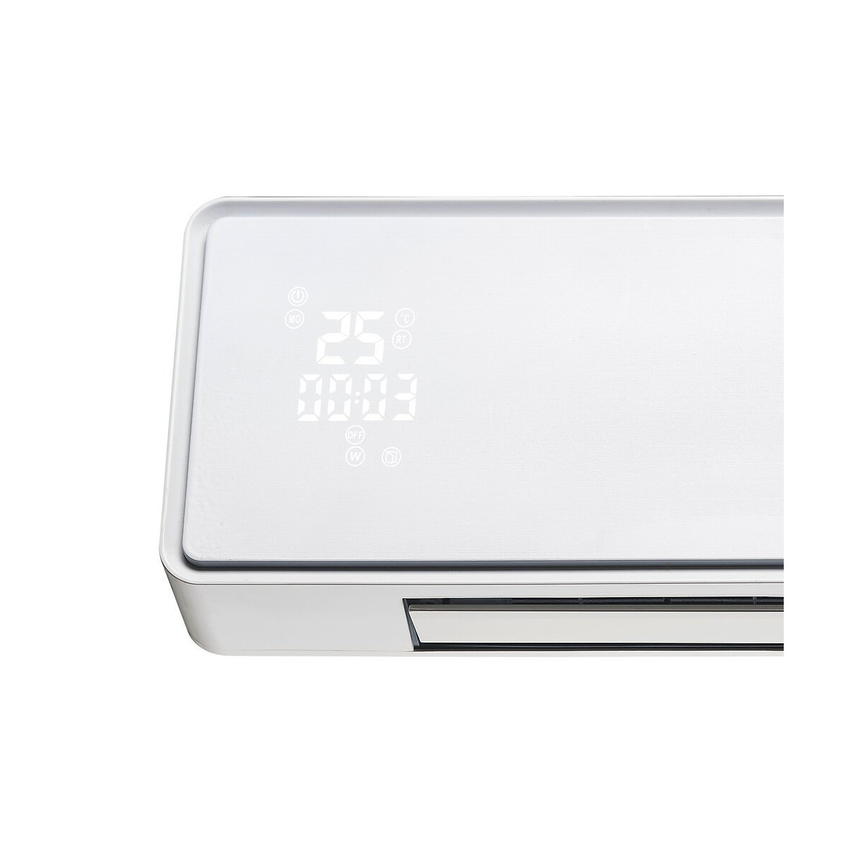 Vous pensez à un système de chauffage simple, économique et de haute qualité ? Purline vous propose la gamme la plus complète de radiateurs soufflants et sa technologie avancée qui optimise la distribution de la chaleur grâce à l'oscillation horizontale et verticale de ses pales. Le modèle HOTI M80 est un chauffage céramique mural avec une protection IP contre l'humidité, une puissance élevée (2000W) et un chauffage silencieux qui commencera rapidement à émettre une chaleur agréable qui vous aidera à maintenir une atmosphère agréable 24 heures sur 24. Il dispose d'un système de sécurité contre la surchauffe, de sorte que s'il dépasse 65º, il s'arrête automatiquement. Il comprend également une nouvelle fonctionnalité exclusive, qui est la fonction fenêtre ouverte, de sorte que si le chauffage détecte une baisse soudaine de la température, il s'arrête automatiquement pour éviter une consommation abusive, et peut être rallumé manuellement comme d'habitude quand vous le souhaitez. Il est très facile à utiliser, il dispose d'un panneau numérique LED à travers lequel vous pouvez régler le thermostat et programmer la température jusqu'à 24 heures, vous pouvez également choisir le mode de fonctionnement qui s'adapte le mieux à vos besoins (ventilation, tempéré ou chaud). Il inclut également la possibilité de programmer une température différente pour chacun des 7 jours de la semaine. D'un design blanc élégant, compact (LxPxH : 54x19x12 cm) et léger (6kg), il est très facile à accrocher au mur, comprend une télécommande et chauffe des surfaces jusqu'à 20m2.Spécifications techniques