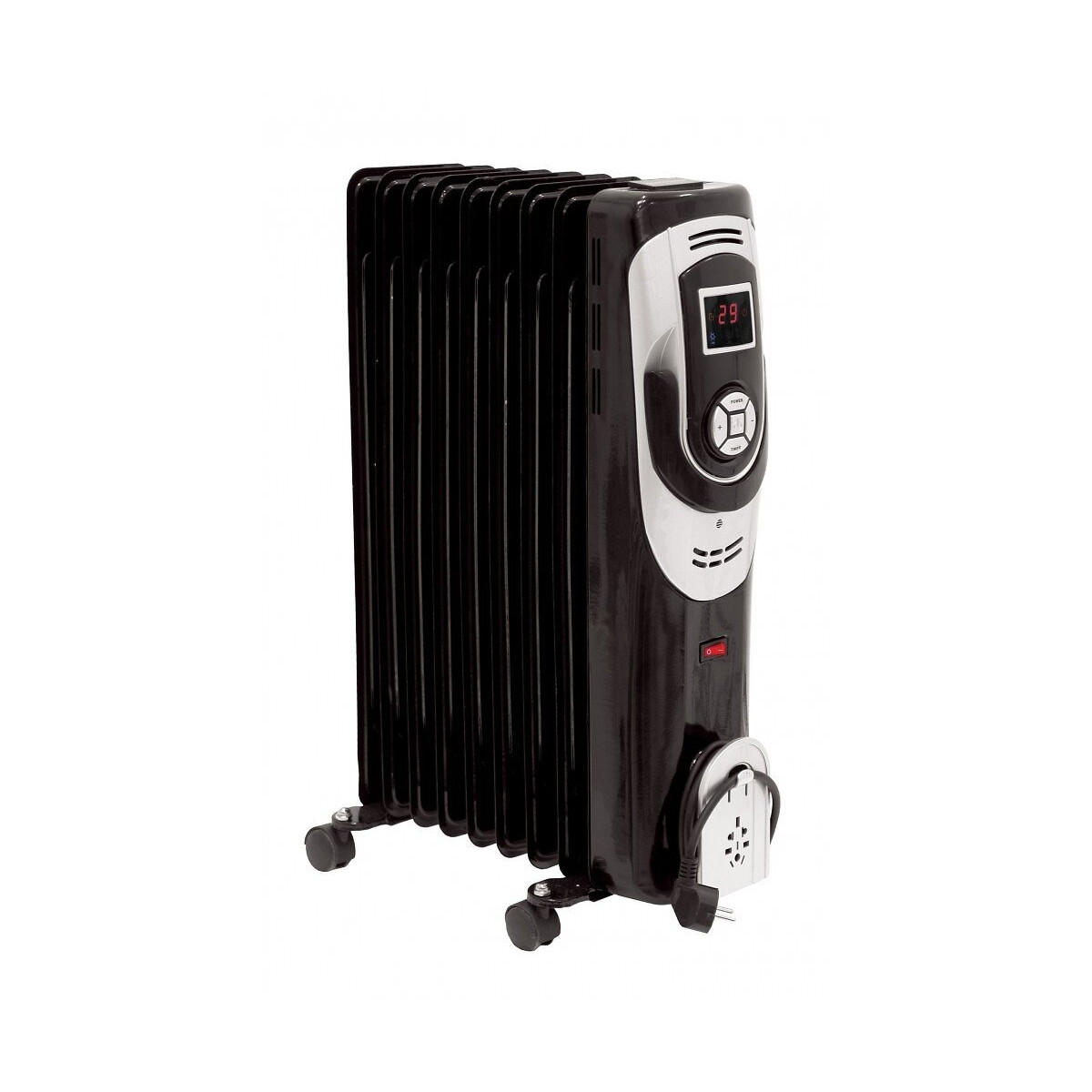 Ce radiateur à bain d'huile est un appareil conçu pour chauffer les appartements, les locaux de stockage et les bureaux, les garages et les sous-sols. Le thermostat vous permet de régler très précisément la température souhaitée. L'huile à l'intérieur reste chaude très longtemps, de sorte que la température reste stable même lorsque le chauffage est éteint. Écran LCD intégré et roues de transport pour une utilisation et un transport faciles, CARACTÉRISTIQUES TECHNIQUES: Radiateur à bain d'huile, Thermostat :, Affichage LCD, Protection contre le basculement, Protection contre la surchauffe, Poids : 11 kg