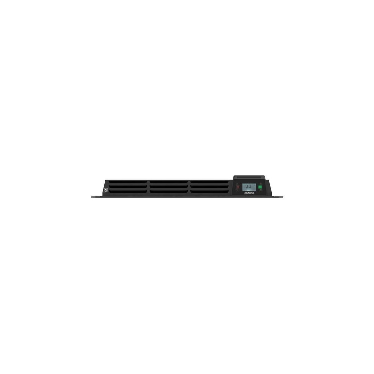 OCEANIC 1500 Watts Rubis Radiateur électrique fixe a inertie seche - Elément chauffant : Pierre céramique - Fil pilote 6 ordres - Thermostat électronique - Affichage digital - Programmation journaliere et hebdomadaire - Façade verre - NoirSpécifications techniques
