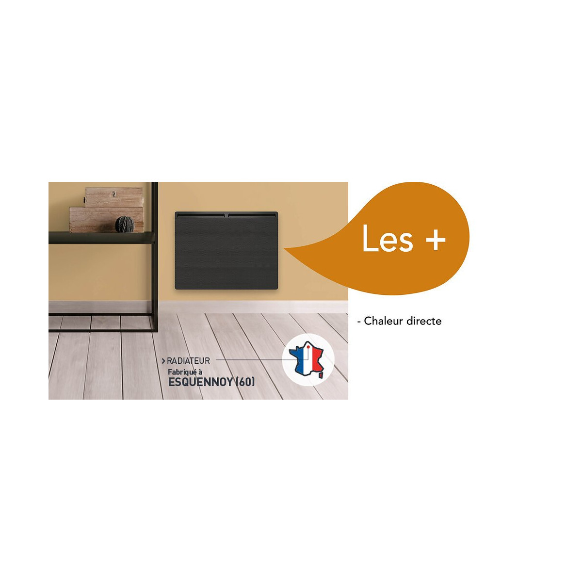 Corps de chauffe aluminium Thermostat electronique Affichage LCD 3 programmes enregistrés Detecteur fenêtre ouverte Systeme anti-salissure Sécurité enfant Existe en format verticalSpécifications techniques