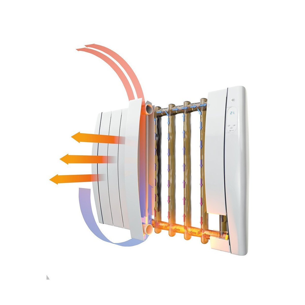 Pour assurer une montée rapide de la température et atteindre en quelques minutes cette douce sensation de chaleur enveloppante, faites confiance au RCV. Caractéristiques Techniques : Thermostat intelligent qui se programme en fonction de notre mode de vie. Fluide thermique à haute inertie. Connexion "Wireless" smartphones, tablettes ou/et PC via smartbox (non incluse). App Haverland gratuite. Chronothermostat digital avec précision de +/-0,2 ºC. Détecteur de présence et détecteur automatique d´ouverture de fenêtres. 3 modes: auto-apprentissage, automatique et manuel. Programmation heure par heure via Haverland App Confort, économie et hors-gel température. Limiteur thermique de sécurité. Thermostat PID. Verrouillage écran. Température ambiante à l´écran. Batterie lithium intégrée à longue durée. Câble d´alimentation de 1,6m aprox. Supports muraux (qui réduisent la possiblité des taches), fixation et kit accessoires inclus. Dimension (L x H x E) cm : 60.6 x 58 x 10 Puissance W : 750 Poids kg : 13,5Spécifications techniques