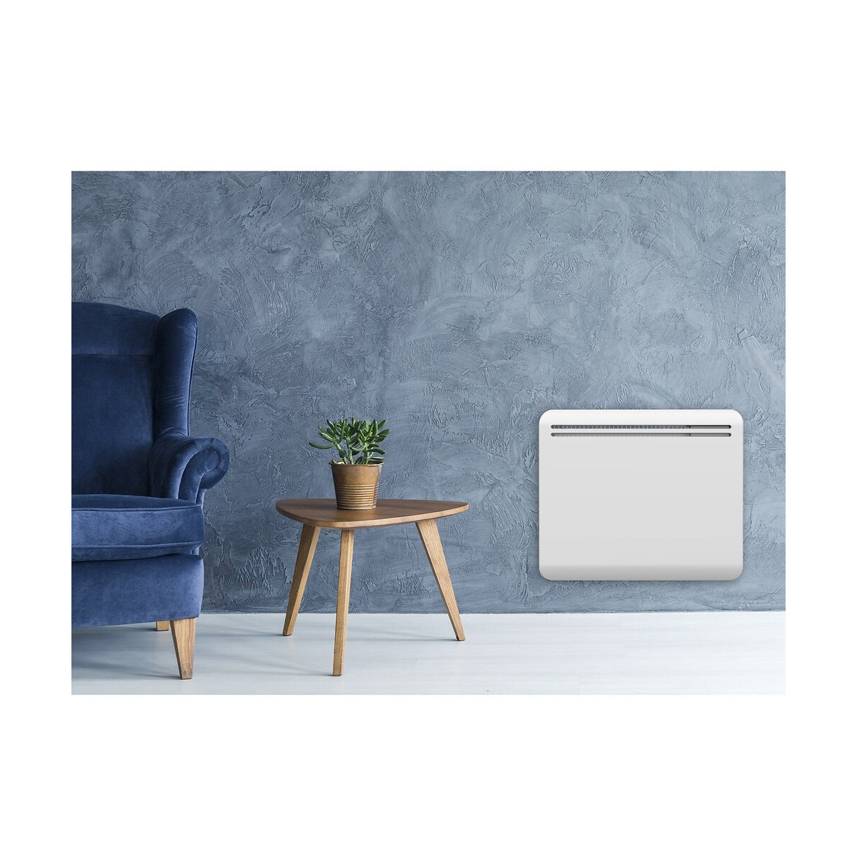 Chauffage à inertie sèche, Contrôle électronique avec écran digital LCD, 4 modes (confort, normal, éco et hors gel), 9 programmes préinstallés, Programmation journalière et quotidienne, Détection de fenêtre ouverte, Protection anti-surchauffe, Fil pilote 6 ordres, Panneau courbé, New ERP(2015/1188) Directive, Class II, IP20. Norme CE/NF/RoHS/ERP. Garantie de 2 ans CARACTÉRISTIQUES : Radiateur électrique à inertie sèche CÉRAMIQUE 1000 W Volume chauffé : 15 m² Programmation LCD. Nouveau design moderne élégant. Design made in France. Couleur blanc. Chaleur douce. double système chauffant ; Double technologie : Inertie céramique + Film chauffant. Cœur de chauffe : éléments en céramique et façade rayonnante à résistance surfacique. Dimension: 60x9xH50cm PRINCIPE DE FONCTIONNEMENT : il est composé d'une pierre chauffée par une résistance qui restitue la chaleur pendant plusieurs heures. La pierre recueille et accumule la chaleur produite par les résistances électriques intégrées dans le matériau et la restitue lentement. Le pouvoir d'inertie thermique dépend du matériau choisi (céramique, fonte...) et du volume du cœur de chauffe. AVANTAGES : Montée rapide en température, chaleur homogène, Meilleur rapport qualité prix, Consomme moins d'énergie comparé aux radiateurs radiants ou panneau rayonnant et continue à diffuser de la chaleur une fois éteint. Plus confortable que le convecteur, s'adapte doucement à la température souhaitée. Le rayonnement de la chaleur permet de l'installer dans de grandes pièces. La sensation de chaleur est douce et continue. INSTALLATION ET MAINTENANCE : Installation facile. Idéal dans les pièces à vivre comme le séjour ou la chambre des enfants. Ne nécessite aucune maintenance. Sécurité thermique à réarmement automatique. Fixation murale verrouillable. Kit de fixation inclus. Garantie 2 ans. Entreprise française basée en France. Norme CE et NF.Spécifications techniques
