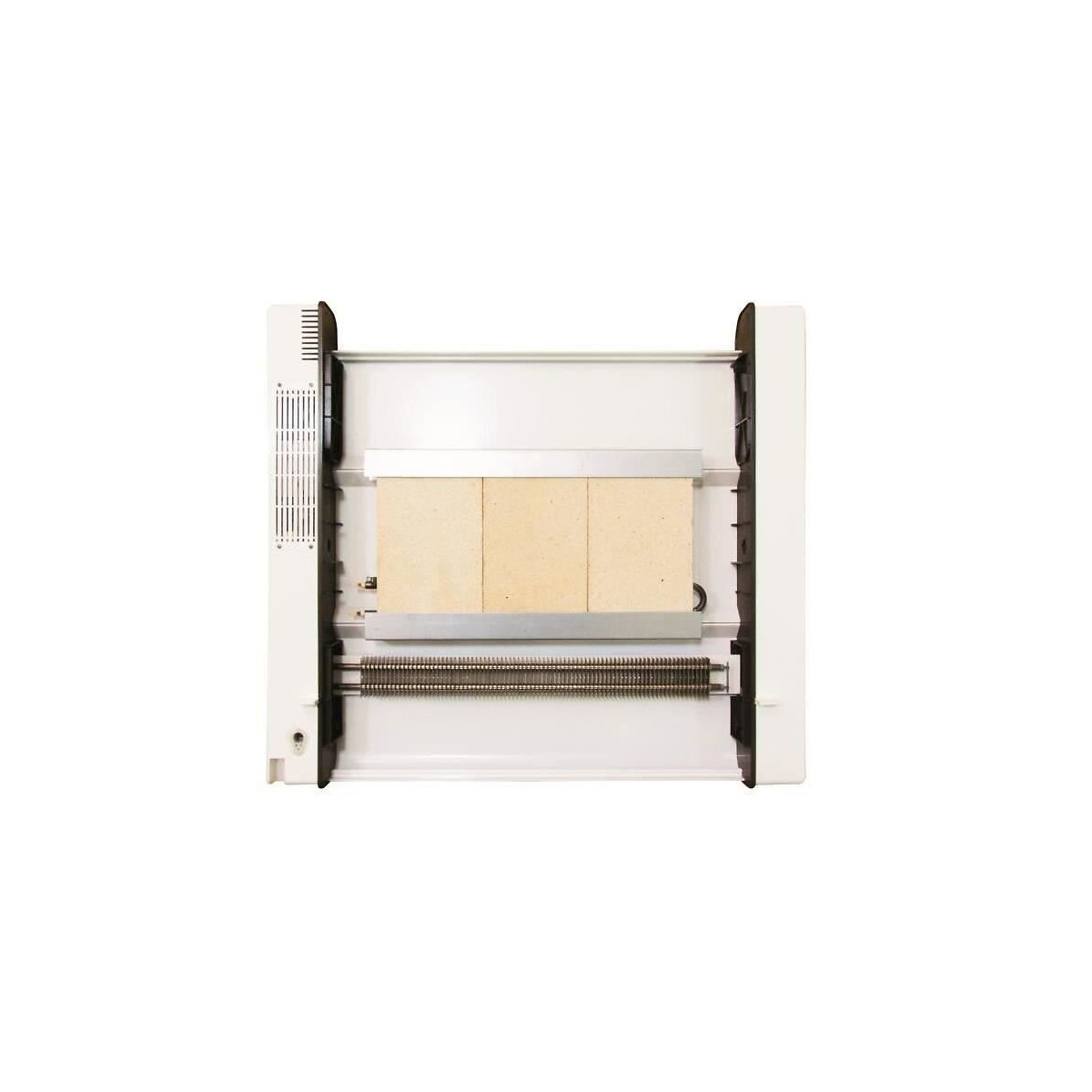 Radiateur a inertie céramique 2000W blanc Horizontal - Chrono-thermostat électronique - Fil pilote 6 ordres - Détection fenetre ouverte - Écran LCD rétro-éclairé bleu - Programmation quotidienne et hebdomadaire - Modes : confort, économique et antigel - Double carénage latéral - Kit de supports de fixation murale inclus - Classe II.Spécifications techniques