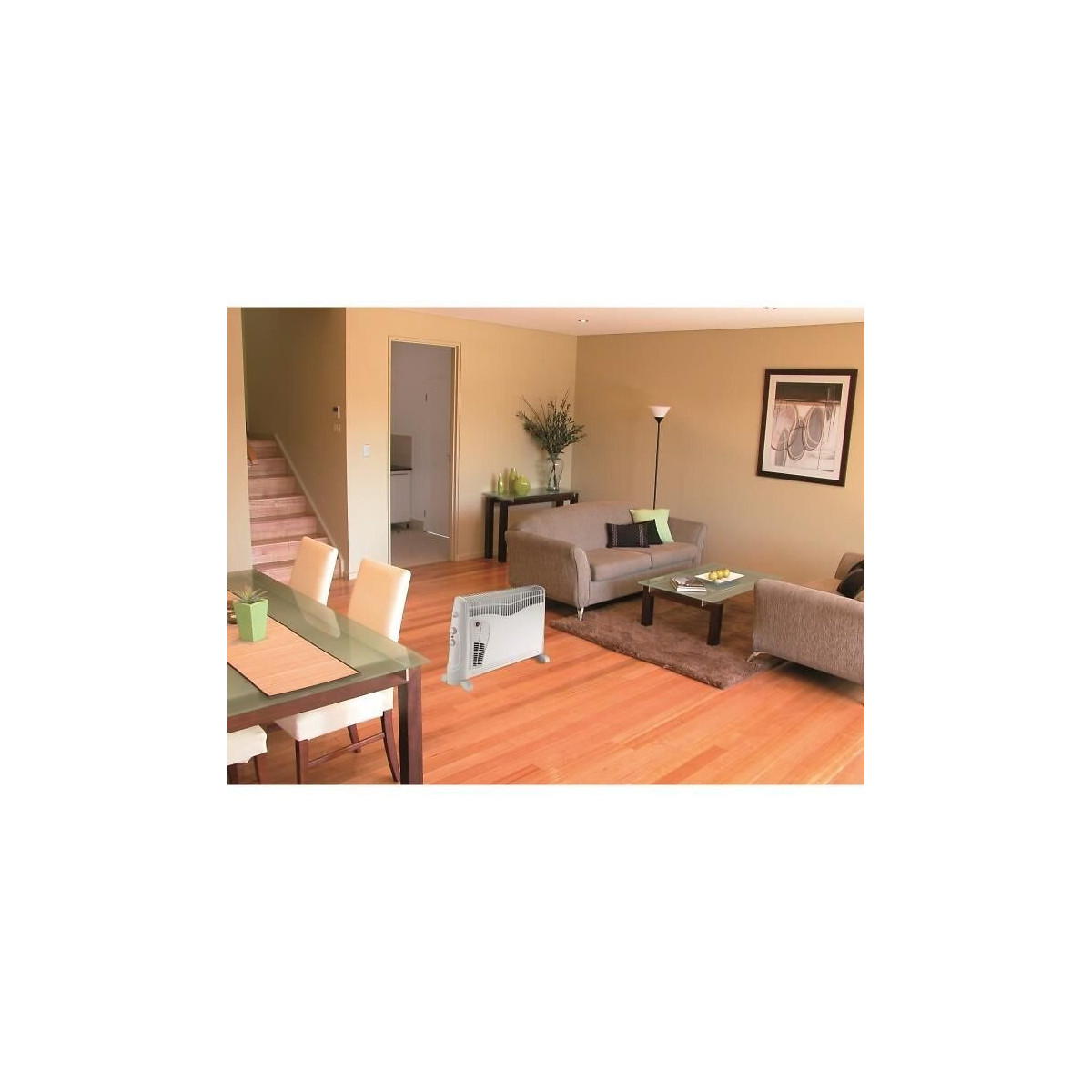 Convecteur mobile Turbo blanc - Puissance de chauffe : 2000 W - Thermostat mécanique - 3 allures de chauffe : 750 / 1250 / 2000W - Témoin lumineux de fonctionnement - Ventilateur : pour la version Turbo - Encoche pour le transport - Longueur du câble : 1,50 m - Classe I - Dimensions : 75x20x47,5 cm - Poids : 3,8 kg.