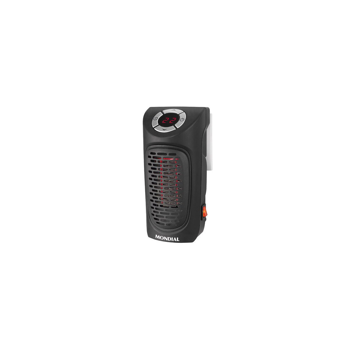 a-12 - À la recherche d'un chauffage d'appoint ? Le chauffage prise soufflant Mondial est l'accessoire parfait des petites pièces à réchauffer. Il vous diffuse une chaleur douce et agréable rapidement. - Branchement sur prise de courant Puissance : 350 W Compact et gain de place Affichage digital Un niveau de chauffe Minuteur : 12h Arrêt automatique Dimensions : 18,7 x 8,4 x 11,4 cm Poids : 0.47 kg Couleur : noir