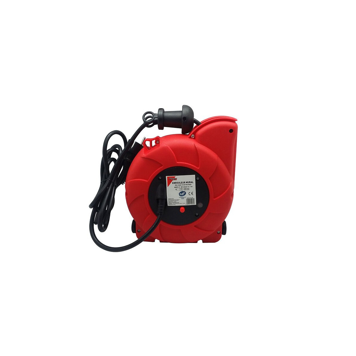 Enrouleur mural 9+1 m, cable H05VV-F 3G1,5, Puissance supportée cable non-déroulé 1400w, puissance supportée cable totalement ,déroulé 2000W