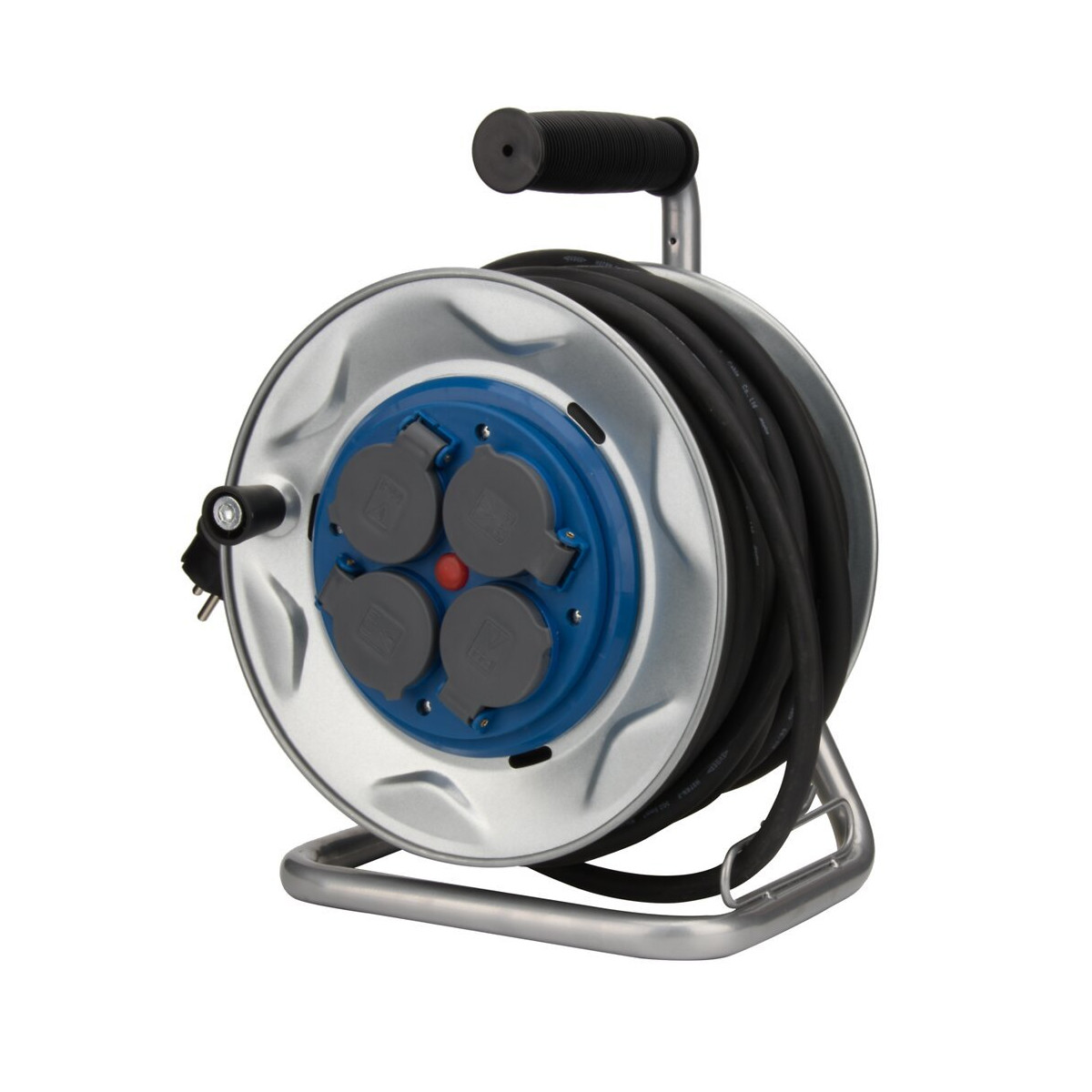 Enrouleur de chantier 4 prises 2P+T câble HO7RN-F 25mètres : Poignée ergonomique pour plus de confort Platine fixe : fini les câbles emmêlés Puissance maxi : 1100W / Déroulé : 3600WCâble HO7RN-F 3G2.5mm²Prises avec clapets de protection