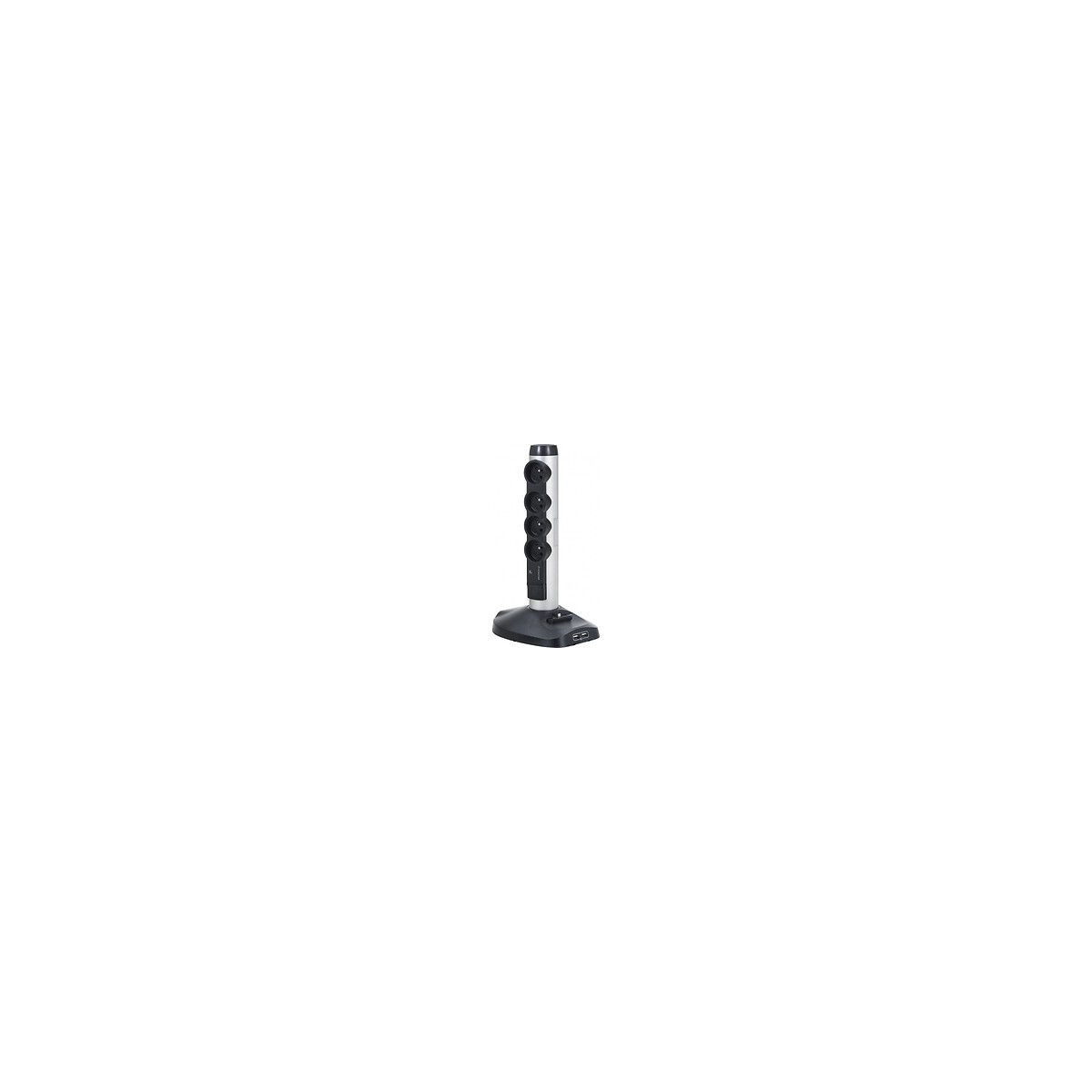 Rallonge multiprise verticale Wi-Fi - 4x2P+T + 2xRJ45 + parafoudre - Alu/Noir. Tour Multiprise avec 4 prises de courant, 2 USB 2,4A et un dock micro-usb. Fonction : point d'accès et/ou répéteur WiFi. Protection des équipements grâce au parafoudre. Couleur noire et aluminium. Fixation possible par le socle. Rallonge multiprise à poser ou à fixer.