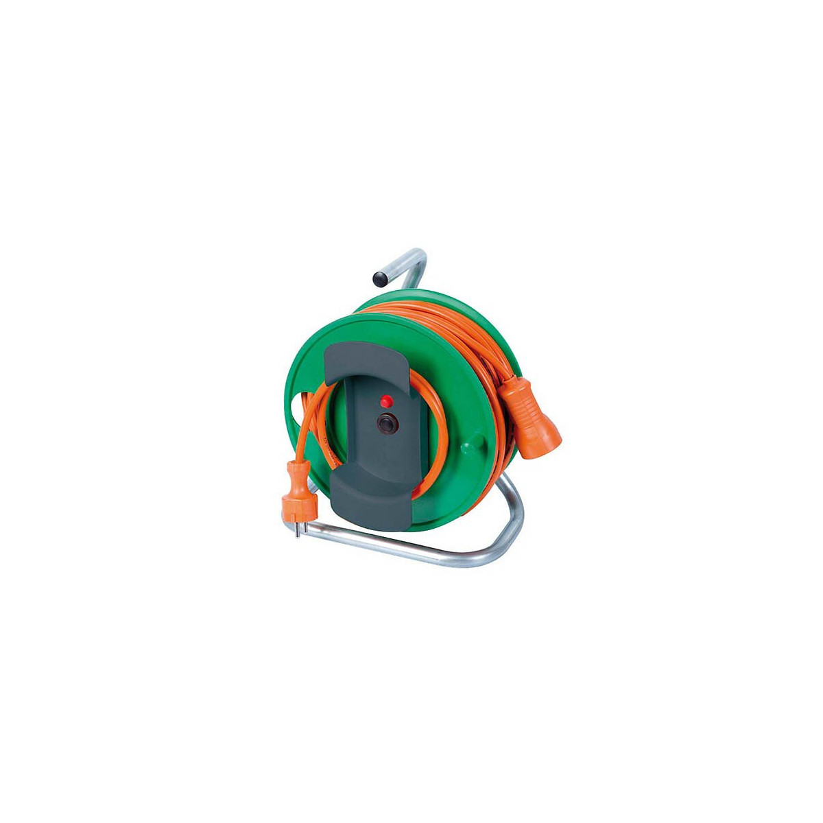 Support enrouleurs en plastique équipé de câble électrique pour le jardin IP20, HO5VVF - 3G1.5, prises 16 A 230 V avec protection enfant, poignée de transport et socle métalSpécifications techniques