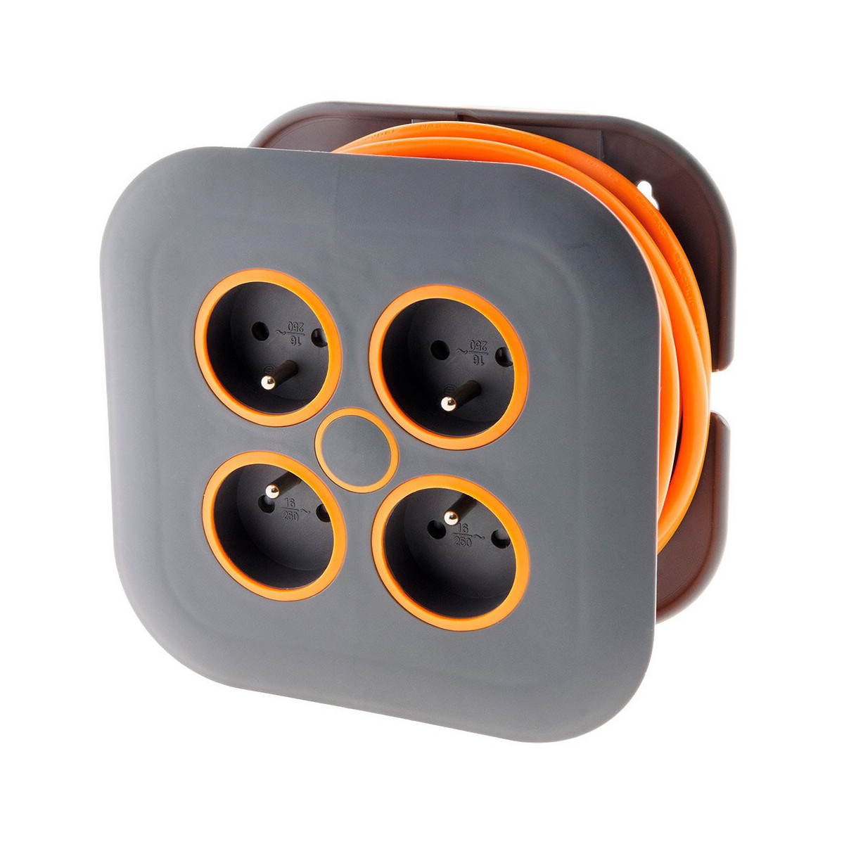 Enrouleur Domestique 4 Prises 2p+t 16a + Coupe-circuit - Gris/orange - Zenitech