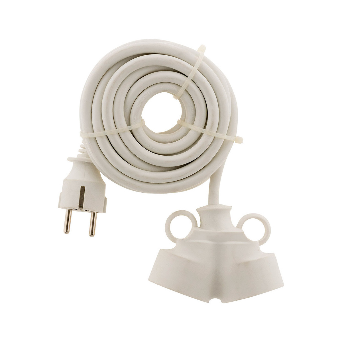 Prolongateur Bi tête 3G1,5 mm blanc 5m - 1 prise mâle + 2 prises Femelle - Zenitech