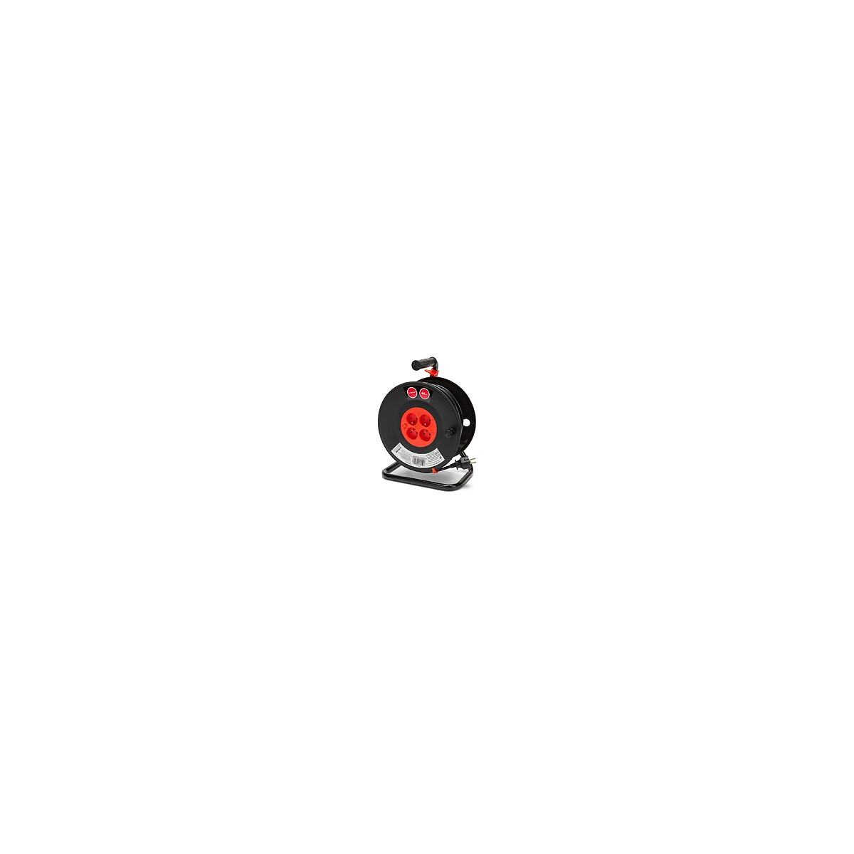 Description: enrouleur électrique avec disjoncteur thermique idéal pour vos travaux ! Enrouleur 40 mètres. 4 prises. 16A - Cable PVC, 3G1, 5mm². Usage intérieur uniquement. Tension assignée: 230V. Normes: CE et NF. Socle métal pour une meilleure stabilité.