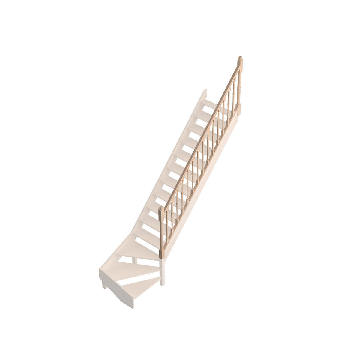 Rampe moderne type T pour escalier avec quart tournant bas Savoie Composé de 2 poteaux, 13 balustres tournés et une main courante en hêtre lamellé A/B, la rampe est un élément de sécurité essentiel à considérer lors de la conception de votre escalier. La présence d'une rampe permet en effet aux personnes empruntant l'escalier de s'y appuyer pour limiter les risques de chutes aussi pour monter les marches que pour en descendre. Facile à installer Usage intérieur