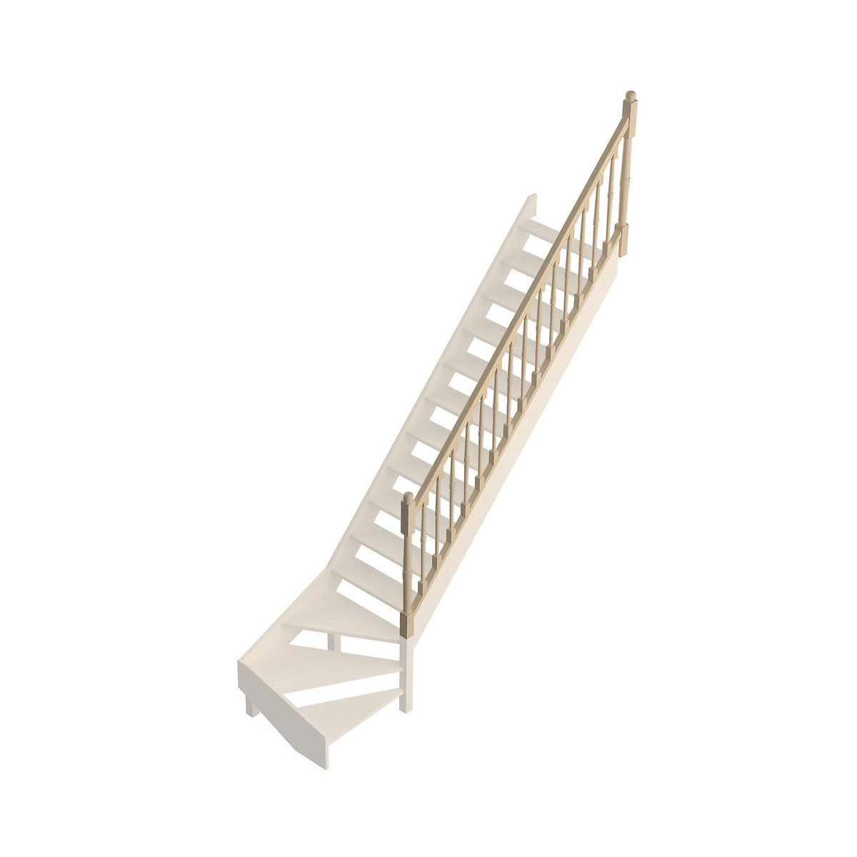 Rampe à balustres tournés type T pour escalier avec quart tournant bas Jura Composé de 2 poteaux, 13 balustres tournés et une main courante en sapin à noeuds, la rampe est un élément de sécurité essentiel à considérer lors de la conception de votre escalier. La présence d'une rampe permet en effet aux personnes empruntant l'escalier de s'y appuyer pour limiter les risques de chutes aussi pour monter les marches que pour en descendre. Facile à installer Usage intérieur