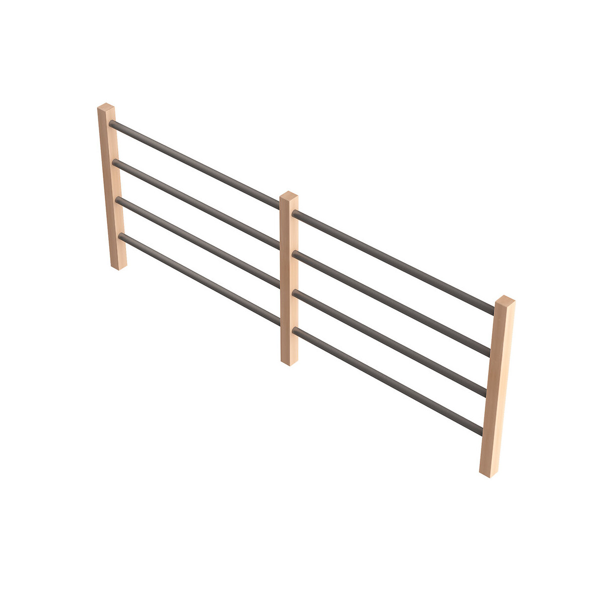 Garde-corps bois-métal type C pour escalier Savoie Module de 320cm, recoupable en largeur3 poteaux en hêtre lamellé A/B, 4 tubes en métal gris + fixation Usage intérieur