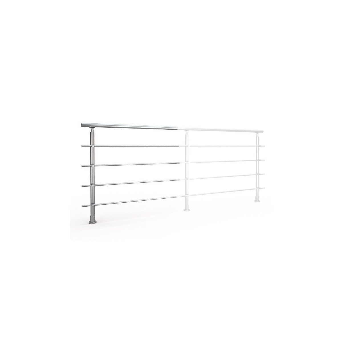 Kit d'extension pour garde-corps aluminium Rondo + prévu en 100cm, ce qui permet d'évoluer par mètre. 100% aluminium anodisé argent Composé de : 1main courante de diamètre 40mm, longueur 100cm + 1 raccord de jonction et 1 embout de finition 1 poteau de diamètre 40mm fixation au sol avec support alu de fixation des lisses sur poteau + 1 fixation pour sol béton 4Lisses de diamètre 16mm, longueur 100cm + 4 raccords de jonction + 4 embouts de finition Vis et chevilles incluses 1 tube de colle Usage intérieur et extérieur Facile à installer et à entretenir