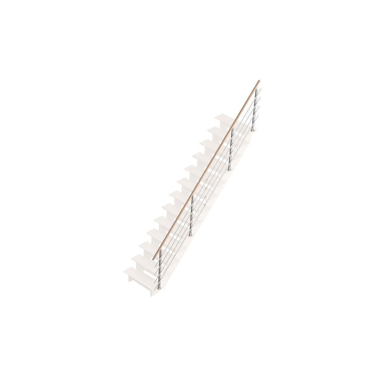 Rampe pour escalier droit Bretagne Composé de 4 poteaux et 4Lisses en aluminium et une main courante de Ø 40mm hêtre, la rampe est un élément de sécurité essentiel à considérer lors de la conception de votre escalier. La présence d'une rampe permet en effet aux personnes empruntant l'escalier de s'y appuyer pour limiter les risques de chutes aussi pour monter les marches que pour en descendre. Facile à installer et à entretenir Usage intérieur