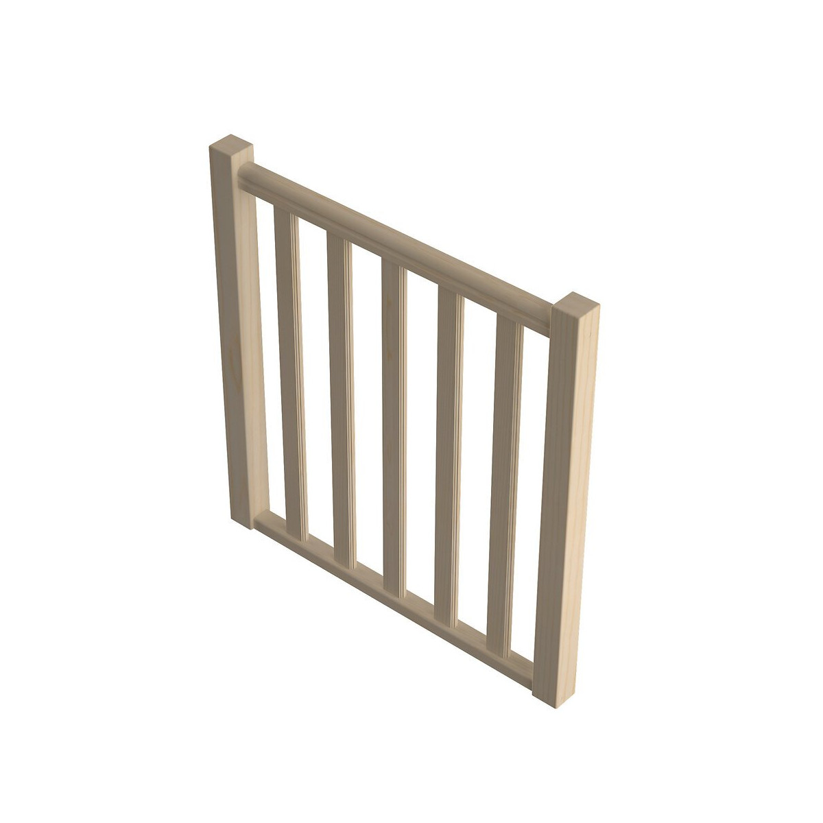 Garde-corps à balustres moulurés type A pour escalier Jura Module de 100cm, recoupable en largeur 2 poteaux, 5 balustres et une main courante en sapin à noeuds + fixations Usage intérieur