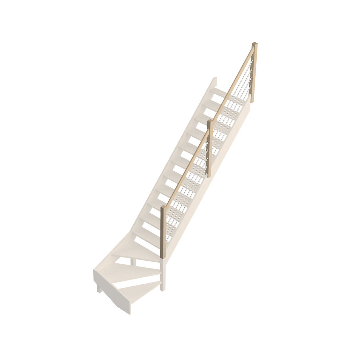Rampe bois-aluminium type G pour escalier quart tournant bas escalier JuRA Composé de 3 poteaux, une main courante en sapin à noeuds et 4Lisses en aluminium, la rampe est un élément de sécurité essentiel à considérer lors de la conception de votre escalier. La présence d'une rampe permet en effet aux personnes empruntant l'escalier de s'y appuyer pour limiter les risques de chutes aussi pour monter les marches que pour en descendre. Facile à installer Usage intérieur