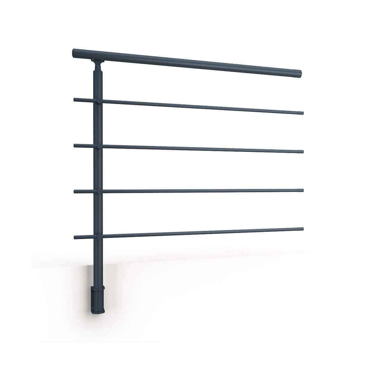 Kit d'extension pour garde-corps aluminium Rondo RAL 7016 S, prévu en 100cm, ce qui permet d'évoluer par mètre. Composé de : 1main courante de diamètre 40mm, longueur 100cm + 1 raccord de jonction + 1 embout de finition1 poteau de diamètre 40mm pour fixation latérale, avec support alu de fixation des lisses sur poteau + 1 pièce de fixation pour sol béton4Lisses de diamètre 16mm, longueur 100cm + 4 raccords de jonction + 4 embouts de finition Vis et chevilles incluses1 tube de colle Usage intérieur et extérieur Facile à installer et à entretenir