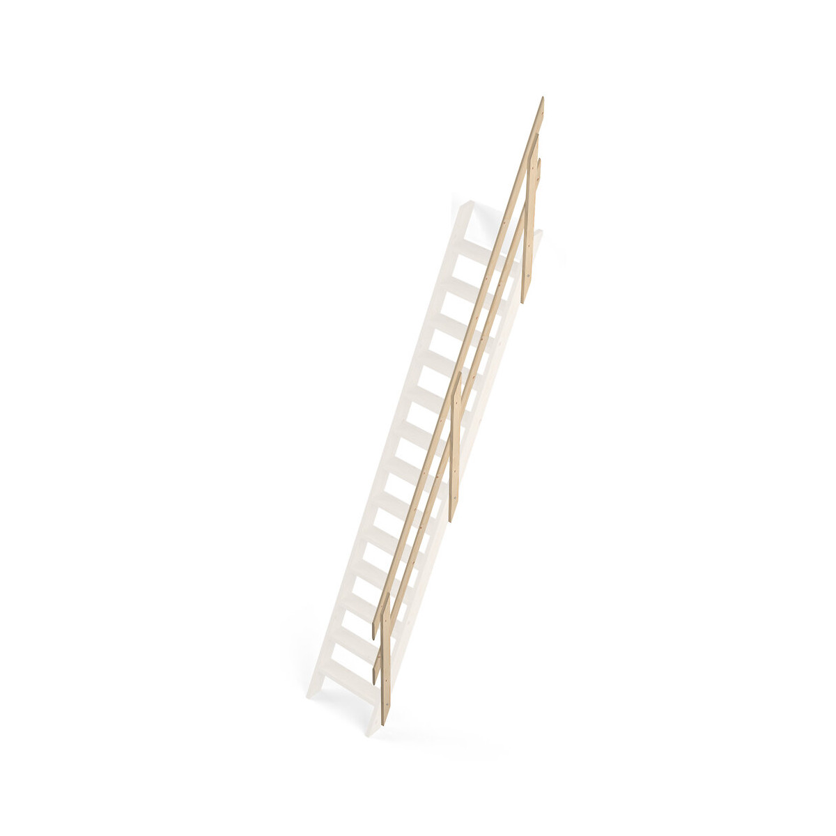 Rampe à lisses pour l'escalier Cottage Premium Composé de : 3 poteaux, 2Lisses dont une main courante en bois de sapin à noeuds Facile à installer Usage intérieur.