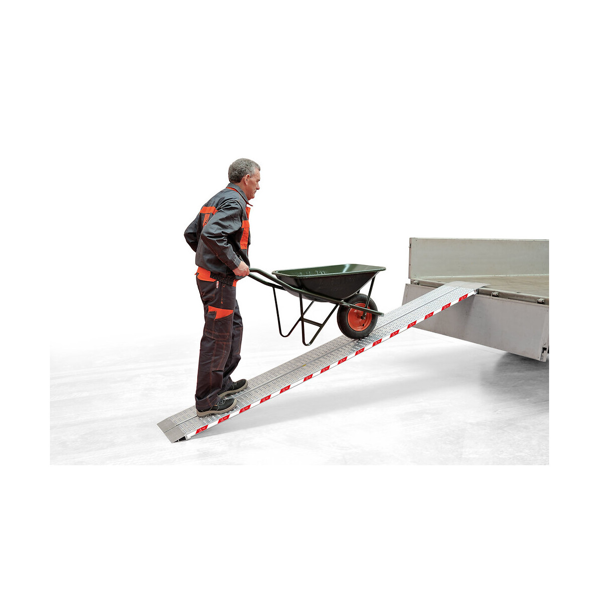 Rampe de chargement fixe en aluminium. Surface antidérapante. Partie supérieure avec perçage. Partie inférieure triangulaire pour le maintien de l'inclinaison la fixation sur les véhicules.