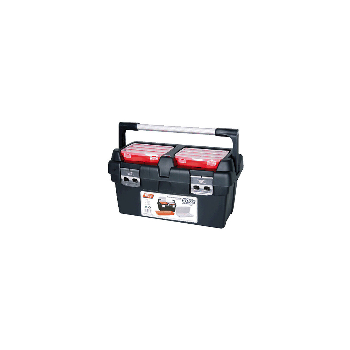 En polypropylène très résistant, avec fermetures métalliques et poignée toute longueur permettant de rattraper une charge mal équilibrée. Caisse cadenassable. Avec 2 casiers à 10 compartiments 260 x 190 x 40 mm logeables sur le couvercle et d’un baladeur à outils. Dimensions : 600 x 305 x 295 mm