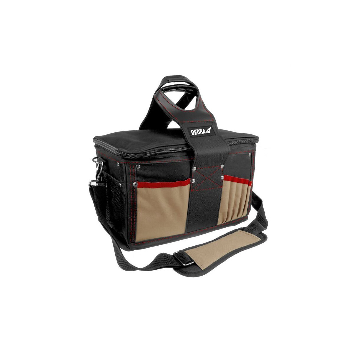 Ce sac à outils comporte 23 poches de différentes tailles. Une longue bandoulière est délicatement bordée. Destiné à toutes sortes d'outils électriques et accessoires, CARACTÉRISTIQUES TECHNIQUES: Taille : 40x24.5x23 cm, 23 poches