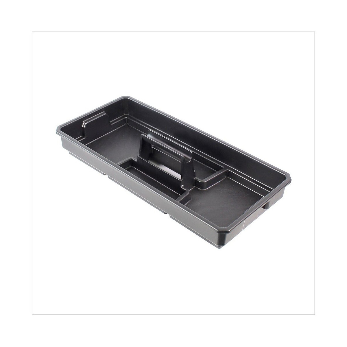 Contenu du paquet: - 1x Porte-outils / Insert pour boîte à outils pour DeWalt DS 300 / DS 400 Tough Box ( H1300111REC ) Description du produit: Cet insert permet de ranger et d'organiser les outils. Il est très robuste et est divisé en quatre compartiments. Spécifications techniques: Dimensions extérieures : 484mm x 228mm x 69mm Poids : 420g