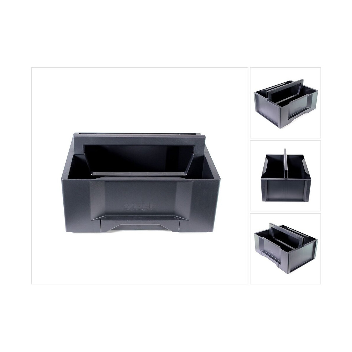 Contenu du paquet: - 1x Makbox Coffret de transport ouvert avec poignée 400x300x230 mm - sans accessoires Description du produit: Cette Makbox est un coffret de transport conçu pour le stockage et le transport ingénieux et sécurisé de divers outils. Sa fermeture à baïonnette brevetée permet un lien rapide et sûr entre plusieurs boîtes à outils. Ce coffret de transport est robuste, stable et équipé d'un couvercle à ressort et d'un système de liaison breveté. Son espace de stockage aux dimensions 36,5 x 11,7 cm vous permettra de ranger de manière ingénieuse des ensembles d'outils ou d' y placer séparément des outils de petites tailles. Spécifications techniques: Dimensions : 400 x 300 x 230 mm Hauteur interne exploitable : 163 mm Matière : ABS Couleur : Noire Fermeture : Fermeture à baïonnette