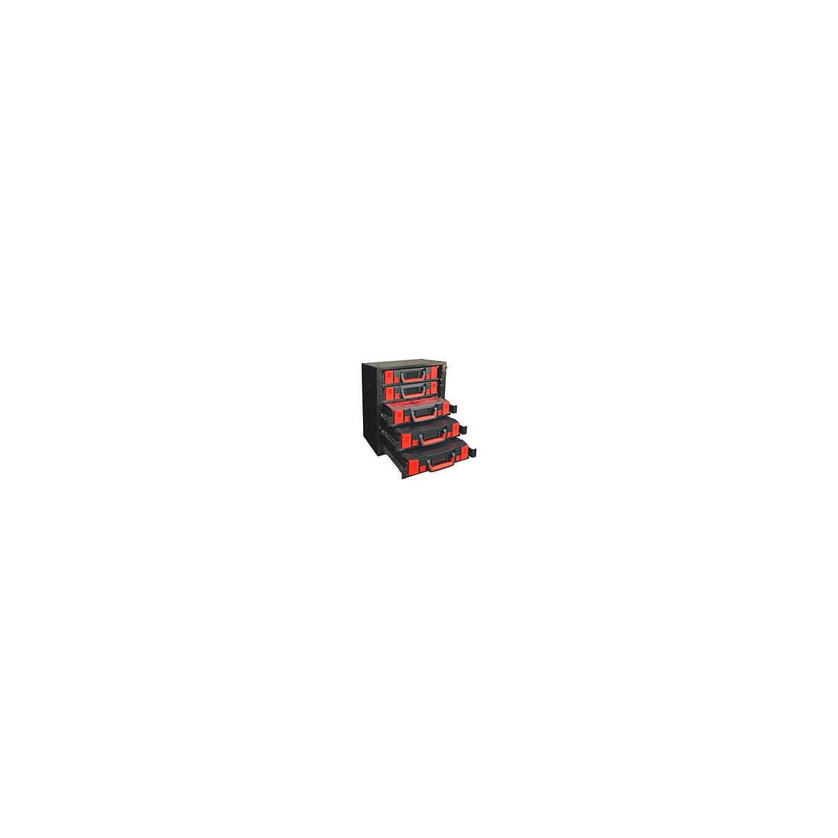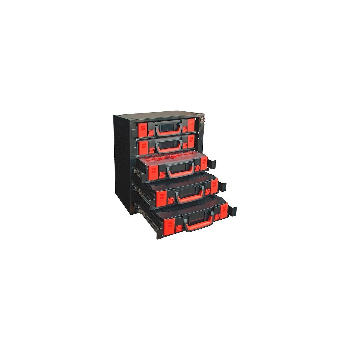 Système De Rangement Composé De Modules Empilables Pour 5 Systèmes De Rangement à Compartiments Orsy à Visser Les Uns Dans Les Autres Pour Stocker 5 Systèmes De Rangement Orsy 4. 4. 1 Rallonges Télescopiques Montées Sur Roulements à Billes Charge Par Plateau : 20 Kg Les Armoires De Rangement Peuvent être Empilées Et Vissées Ensemble Panneaux Latéraux Et Panneau Arrière Avec Trous Carrés Pour Fixer Des Accessoires De La Gamme à Plaques Perforées Poignées Empilables Serrure Centrale Avec Deux Clés Couleur : Noir Graphite (ral 9011) Matériau : Tôle Acier Revêtu Par Poudre Cinq Systèmes De Rangement Avec Séparateurs