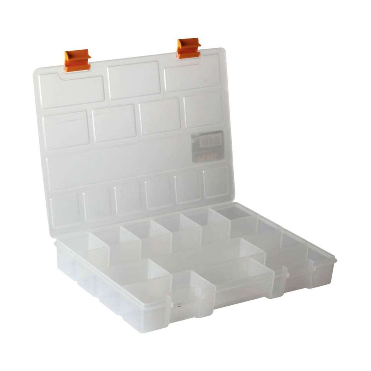 Cette boîte de rangement vous propose plusieurs compartiments utiles. S'ouvre et se ferme à l'aide de 2 fermoirs, elle possède un couvercle transparent pour faciliter la visualisation du contenu. Elle est disponible en 3 formats: 9, 11 ou 13 compartiments.