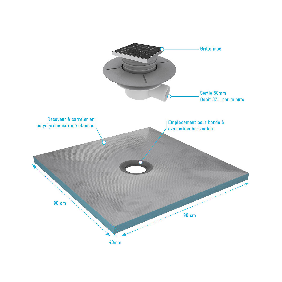 Caractéristiques du receveur: Receveur à carreler en polystyrène extrudé étanche Facile à installer grâce à la bague à visser Épaisseur 40mm Peut être découpé pour montage sur mesure Dimensions 90x90x4cm Caractéristiques de la bonde: Bonde pour receveur à carreler Sortie horizontale en diamètre 50mm Facile à installer grâce à la bague à visser Cheminée découpable à la hauteur du carrelage Bonde compatible uniquement avec les receveur à carreler RAINY et HIGH RAINY Référence de produit: PACR001 Cocorico ! MyShowerRoom est une entreprise Française et toute la conception de nos produits est également Française. Ce qui est un véritable plus pour être au plus près de ses clients et avoir une meilleure connaissance de leurs attentes. Qui sommes nous L’HISTOIRE DE MYSHOWERROOM Nous avons créé MyShowerRoom en 2003 avec l’ambition de démocratiser le design et l’innovation dans la salle de bain pour faire de cette pièce un lieu à part entière, un véritable lieu d’histoires à vivre pour toute la famille. Nos cabines de douche et meubles de salle de bain dans l’ère du temps à des tarifs très accessibles. Nos nombreux brevets garantissent l’originalité de notre gamme de cabines de douches. Et nos ingénieurs mettent en œuvre tout leur savoir-faire et toutes les technologies innovantes au service d’une simplicité d’installation et d’utilisation incomparable pour tous. ÊTRE BIENVEILLANT AVEC NOS CLIENTS Notre service client a un objectif : rendre nos clients heureux. Pour cela nous veillons à répondre dans les 24h aux demandes clients. Mais aussi de toujours apporter une solution et entière satisfaction à nos clients. CONSTRUIRE DES PRODUITS TOUJOURS PLUS PERFORMANTS Nos ingénieurs, ainsi que nos équipes terrain consacrent tous leurs efforts à créer des produits adaptés à vos besoins, et toujours plus innovants grâce à nos technologies. Notre objectif est d’être votre unique interlocuteur pour tous vos projets de salle de bain. CONCRÉTISER LES RÊVES DE CHACUN Un projet de salle de bain ? Nous le réalisons ! Lieu de détente et de relaxation par excellence, la salle de bain est une des pièces maîtresse de la maison. Chez MyShowerRoom, nous mettons tout en oeuvre afin que ce rêve devienne réalité. PROPOSER UNE GAMME COMPLÈTE DE PRODUITS Nous vous proposons grâce à notre boutique en ligne une gamme complète de produits Made in MyShowerRoom pour équiper, et accessoiriser votre salle de bain. Un catalogue que nous renouvelons régulièrement avec les dernières technologies MyShowerRoom. APPORTER UNE EXPERTISE HUMAINE Parce que l’humain passe avant tout, nous travaillons avec les meilleurs experts. La satisfaction de nos clients est notre seule et unique priorité. Chaque problème a une solution, et c’est dans cette optique que nous avons mis en place un chat pour échanger directement avec nos équipes. NOTRE CENTRE LOGISTIQUE 11 000 m² d’entrepôt 7000 palettes en stock 1 800 colis traités par jour Plus de 260 préparations de commandes quotidiennes 12 quais de chargement/déchargement CONSEILS & VENTES Une équipe disponible 5 jours sur 7 pour vous accompagner dans vos achats. LIVRAISON GRATUITE Pour toute commande sur le site MyShowerRoom, la livraison est gratuite dans toute la France. UNE GARANTIE DE QUALITÉ Grâce à nos produits brevetés vous bénéficiez de produits uniques. Référence produit: PACR001 Retrouvez plus d'informations produit et des conseils de montage sur le site Aurlane. Remarques importantes: Ces colis sont volumineux, la livraison est effectuée par transporteur spécialisé en bas de chez vous. Les chauffeurs ne sont pas habilités à porter la marchandise, mais uniquement à la décharger. Pas de livraison à l'étage. L'adresse de livraison doit être accessible en camion poids lourd. Dans le cas contraire la marchandise sera mise à disposition au dépôt le plus proche (distance non garantie). Les rendez-vous sont gérés directement par les transporteurs. Attention à bien contrôler la marchandise à réception pour éviter tous litiges.