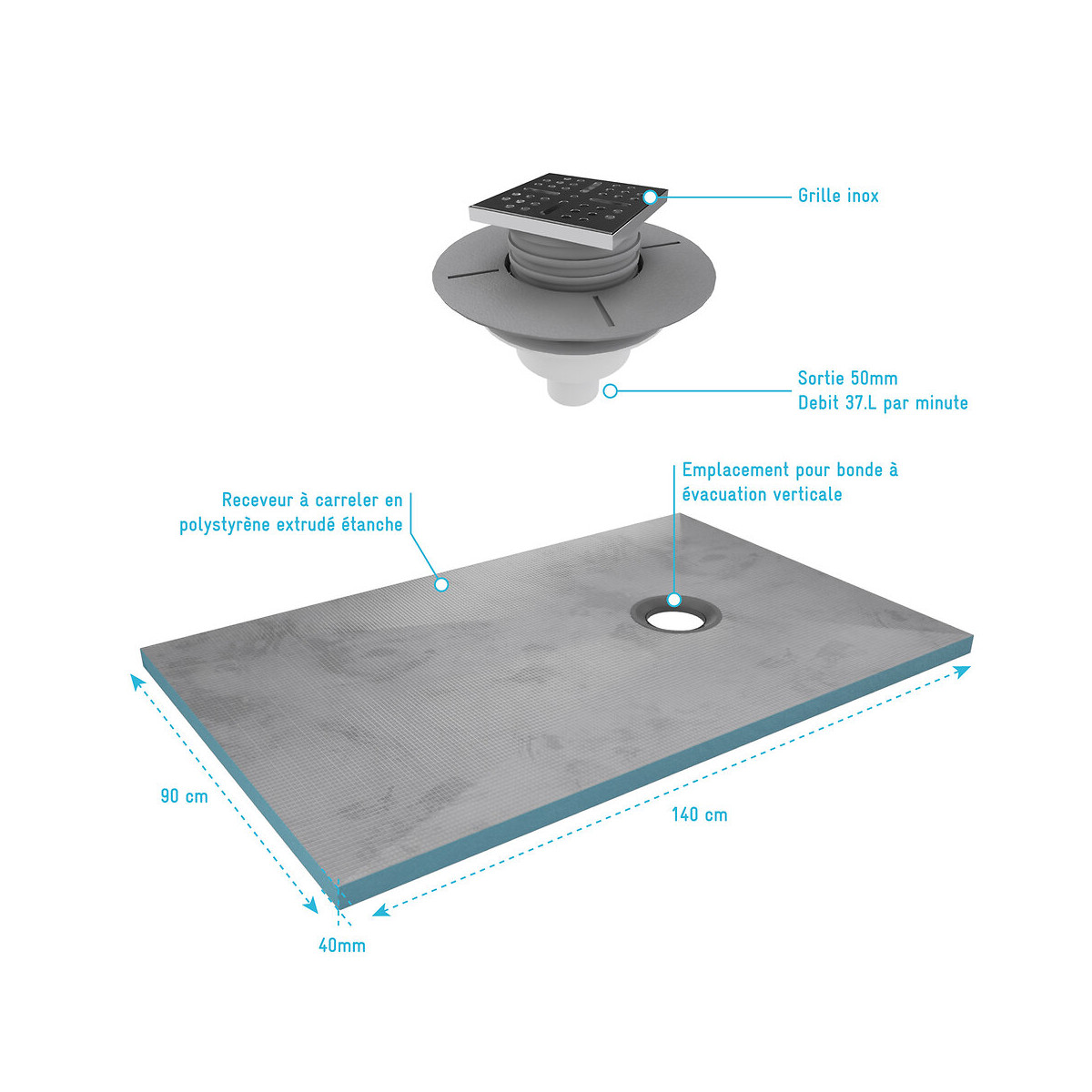 Caractéristiques Bonde pour receveur à carreler Sortie verticale en diamètre 50mm Facile à installer grâce à la bague à visser Cheminée découpable à la hauteur du carrelage Bonde compatible uniquement avec les receveur à carreler RAINY et HIGH RAINY Caractéristiques du receveur : Receveur à carreler en polystyrène extrudé étanche Facile à installer grâce à la bague à visser Épaisseur 40mm Peut être découpé pour montage sur mesure Dimensions 90x140x4cm Référence: PACR004 Garantie 2 ans pièces et non main d'oeuvre. Profilé noir mat thermolaqué : Le thermolaquage est une technique de traitement spécifique réservé aux matériaux en métal ou en aluminium brut. On projette de la peinture en poudre chargée en électricité statique qui va se déposer sur toute la surface des profilés. Cette technique de pulvérisation en poudre , qui s’appelle projection électrostatique ou poudrage électrostatique, permet d'avoir un revêtement complètement uniforme sur tous les profilés. Ce type de traitement dispense l’utilisation de produits chimiques nocifs pour la santé et l’environnement comme les solvants. Après avoir été recouverte de poudre, la pièce doit passer dans un four où elle sera chauffée pendant 20 minutes à 200°C. Les avantages du thermolaquage : Cette technique possède de nombreux avantage, qui sont La surface peinte possède une dureté supérieure ce qui a pour conséquence une résistance aux chocs accrue Le thermolaquage a une meilleure résistance à la corrosion La couleur des profilés thermolaqués résiste mieux au vieillisement et tout autres élément tel que l'humidité etc. Les profilés thermolaqués présentent une meilleure finition, fini les coulures de peinture et défauts d'aspect, avec cette technique la surface est uniforme Sans solvant c'est un véritable plus pour la santé Mais aussi plus écologique (pas de solvants) Dans un souci de qualité mais aussi de sécurité nos produits répondent à toutes les normes Européennes en vigeur. Que ce soit en terme de sécurité en cas de casse, d'entretien de nos produits ou de la durée de vie de ces derniers, nos produits remplissent tous les critères. Verre trempé : Le verre trempé est un verre qui a subi un traitement afin d’améliorer ses propriétés. Nous utilisons la trempe thermique qui consiste à porter le verre à très haute température (environ à 700 °C), puis de le refroidir rapidement. Ce processus favorise l'apparition de tensions en profondeur et celle de la compression à la surface du verre. Tout cela a pour effet l’amélioration de sa résistance aux chocs. Il est de 2 à 5 fois plus résistant que le verre simple. Mais aussi diminue grandement la dangerosité du verre car en cas de casse le verre explose en de petits morceaux et non pas en de grands pans tranchants. Pour le reste il conserve les mêmes propriétés que le verre classique Norme harmonisée : EN14428:2004 Certification Européenne: Aptitude au nettoyage : EN14428 :2004+A1:2008 Clause 4.2 Résistance à l’impact / Propriétés d’éclatement: EN14428:2004+A1:2008 Clause 4.3 Durabilité : EN14428:2004+A1:2008 Clause 4.4 MyShowerRoom c’est aussi la garantie de durabilité : Nous garantissons un stocks de pièces détachées d’au moins 5 ans Notre visserie est en acier inoxydable ce qui est une garantie anticorrosion Garantie 2 ans pièces uniquement Cocorico ! MyShowerRoom est une entreprise Française et toute la conception de nos produits est également Française. Ce qui est un véritable plus pour être au plus près de ses clients et avoir une meilleure connaissance de leurs attentes. Qui sommes nous L’HISTOIRE DE MYSHOWERROOM Nous avons créé MyShowerRoom en 2003 avec l’ambition de démocratiser le design et l’innovation dans la salle de bain pour faire de cette pièce un lieu à part entière, un véritable lieu d’histoires à vivre pour toute la famille. Nos cabines de douche et meubles de salle de bain dans l’ère du temps à des tarifs très accessibles. Nos nombreux brevets garantissent l’originalité de notre gamme de cabines de douches. Et nos ingénieurs mettent en œuvre tout leur savoir-faire et toutes les technologies innovantes au service d’une simplicité d’installation et d’utilisation incomparable pour tous. ÊTRE BIENVEILLANT AVEC NOS CLIENTS Notre service client a un objectif : rendre nos clients heureux. Pour cela nous veillons à répondre dans les 24h aux demandes clients. Mais aussi de toujours apporter une solution et entière satisfaction à nos clients. CONSTRUIRE DES PRODUITS TOUJOURS PLUS PERFORMANTS Nos ingénieurs, ainsi que nos équipes terrain consacrent tous leurs efforts à créer des produits adaptés à vos besoins, et toujours plus innovants grâce à nos technologies. Notre objectif est d’être votre unique interlocuteur pour tous vos projets de salle de bain. CONCRÉTISER LES RÊVES DE CHACUN Un projet de salle de bain ? Nous le réalisons ! Lieu de détente et de relaxation par excellence, la salle de bain est une des pièces maîtresse de la maison. Chez MyShowerRoom, nous mettons tout en oeuvre afin que ce rêve devienne réalité. PROPOSER UNE GAMME COMPLÈTE DE PRODUITS Nous vous proposons grâce à notre boutique en ligne une gamme complète de produits Made in MyShowerRoom pour équiper, et accessoiriser votre salle de bain. Un catalogue que nous renouvelons régulièrement avec les dernières technologies MyShowerRoom. APPORTER UNE EXPERTISE HUMAINE Parce que l’humain passe avant tout, nous travaillons avec les meilleurs experts. La satisfaction de nos clients est notre seule et unique priorité. Chaque problème a une solution, et c’est dans cette optique que nous avons mis en place un chat pour échanger directement avec nos équipes. NOTRE CENTRE LOGISTIQUE 11 000 m² d’entrepôt 7000 palettes en stock 1 800 colis traités par jour Plus de 260 préparations de commandes quotidiennes 12 quais 