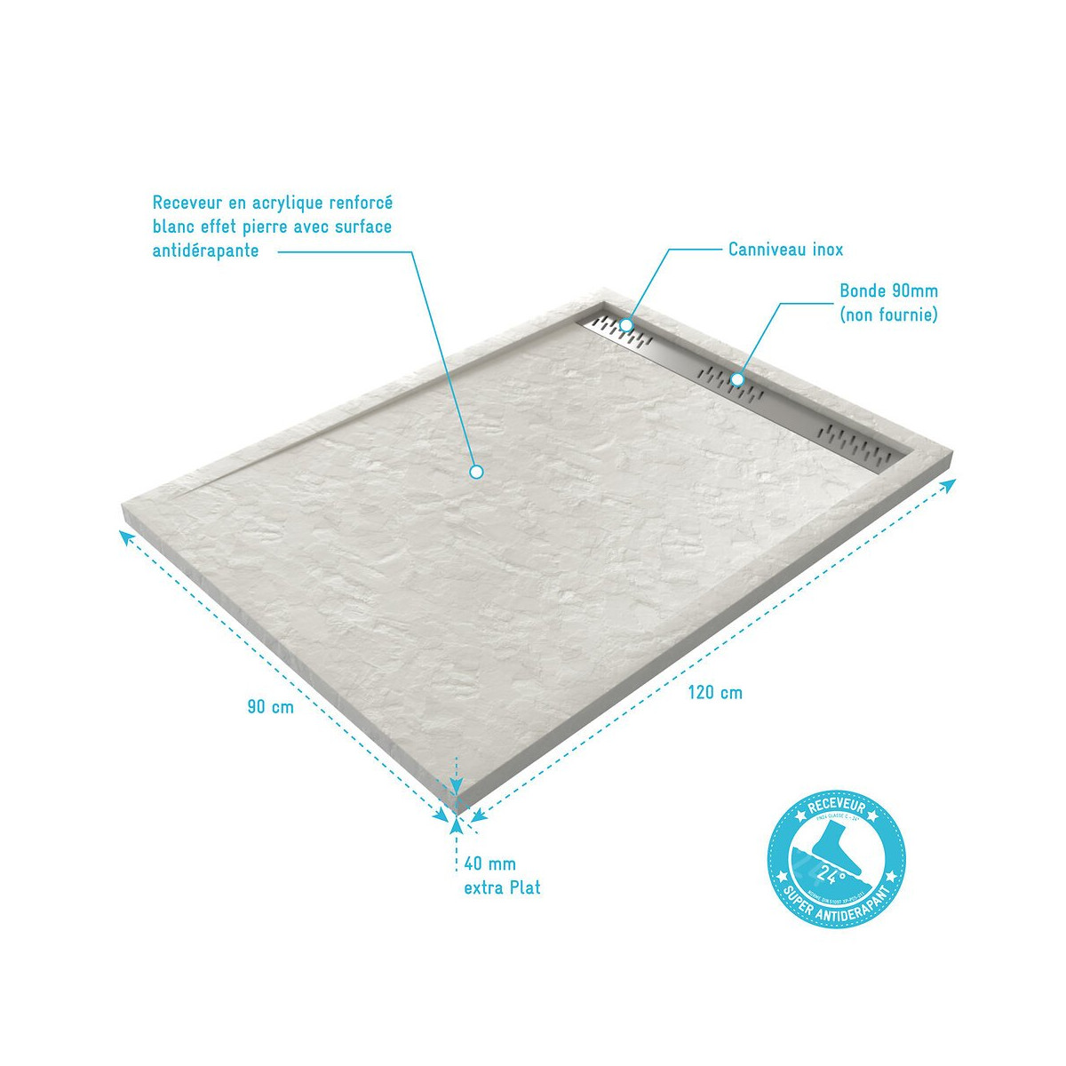 Receveur RECTANGLE MOON RECTANGULAR LINEAR 120-90 Caractéristiques techniques du receveur : Receveur en acrylique renforcé blanc effet pierre Evacuation linéaire Grille caniveau finition CHROME Faible épaisseur : 4cm Dimensions du receveur : 120x90x4 cm Les plus produit: La gamme de receveur MOON est en acrylique renforcé blanc doté d’un effet pierre. A poser ou à encastrer, il vous sera très facile d’installer un receveur MOON dans votre salle de bain. Avec un excellent rapport qualité-prix, un receveur en acrylique vous assure un confort grâce à sa fonction antidérapante. Son poids étant léger, il vous sera d’autant plus facile d’entretenir ce receveur MOON. Ce receveur existe en plusieurs dimensions et formes (carré ou rectangle). Référence : FAC612 Désignation produit : MOON RECTANGULAR LINEAR 120-90 Cocorico ! MyShowerRoom est une entreprise Française et toute la conception de nos produits est également Française. Ce qui est un véritable plus pour être au plus près de ses clients et avoir une meilleure connaissance de leurs attentes. Qui sommes nous L’HISTOIRE DE MYSHOWERROOM Nous avons créé MyShowerRoom en 2003 avec l’ambition de démocratiser le design et l’innovation dans la salle de bain pour faire de cette pièce un lieu à part entière, un véritable lieu d’histoires à vivre pour toute la famille. Nos cabines de douche et meubles de salle de bain dans l’ère du temps à des tarifs très accessibles. Nos nombreux brevets garantissent l’originalité de notre gamme de cabines de douches. Et nos ingénieurs mettent en œuvre tout leur savoir-faire et toutes les technologies innovantes au service d’une simplicité d’installation et d’utilisation incomparable pour tous. ÊTRE BIENVEILLANT AVEC NOS CLIENTS Notre service client a un objectif : rendre nos clients heureux. Pour cela nous veillons à répondre dans les 24h aux demandes clients. Mais aussi de toujours apporter une solution et entière satisfaction à nos clients. CONSTRUIRE DES PRODUITS TOUJOURS PLUS PERFORMANTS Nos ingénieurs, ainsi que nos équipes terrain consacrent tous leurs efforts à créer des produits adaptés à vos besoins, et toujours plus innovants grâce à nos technologies. Notre objectif est d’être votre unique interlocuteur pour tous vos projets de salle de bain. CONCRÉTISER LES RÊVES DE CHACUN Un projet de salle de bain ? Nous le réalisons ! Lieu de détente et de relaxation par excellence, la salle de bain est une des pièces maîtresse de la maison. Chez MyShowerRoom, nous mettons tout en oeuvre afin que ce rêve devienne réalité. PROPOSER UNE GAMME COMPLÈTE DE PRODUITS Nous vous proposons grâce à notre boutique en ligne une gamme complète de produits Made in MyShowerRoom pour équiper, et accessoiriser votre salle de bain. Un catalogue que nous renouvelons régulièrement avec les dernières technologies MyShowerRoom. APPORTER UNE EXPERTISE HUMAINE Parce que l’humain passe avant tout, nous travaillons avec les meilleurs experts. La satisfaction de nos clients est notre seule et unique priorité. Chaque problème a une solution, et c’est dans cette optique que nous avons mis en place un chat pour échanger directement avec nos équipes. NOTRE CENTRE LOGISTIQUE 11 000 m² d’entrepôt 7000 palettes en stock 1 800 colis traités par jour Plus de 260 préparations de commandes quotidiennes 12 quais de chargement/déchargement CONSEILS & VENTES Une équipe disponible 5 jours sur 7 pour vous accompagner dans vos achats. LIVRAISON GRATUITE Pour toute commande sur le site MyShowerRoom, la livraison est gratuite dans toute la France. UNE GARANTIE DE QUALITÉ Grâce à nos produits brevetés vous bénéficiez de produits uniques. Garantie 2 ans pièces et non main d'oeuvre. Référence produit: FAC612 Retrouvez plus d'informations produit et des conseils de montage sur le site Aurlane. Remarques importantes: Ces colis sont volumineux, la livraison est effectuée par transporteur spécialisé en bas de chez vous. Les chauffeurs ne sont pas habilités à porter la marchandise, mais uniquement à la décharger. Pas de livraison à l'étage. L'adresse de livraison doit être accessible en camion poids lourd. Dans le cas contraire la marchandise sera mise à disposition au dépôt le plus proche (distance non garantie). Les rendez-vous sont gérés directement par les transporteurs. Attention à bien contrôler la marchandise à réception pour éviter tous litiges.