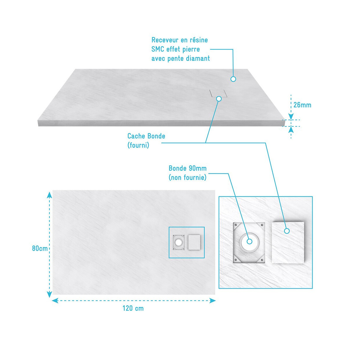 Caractéristiques techniques du receveur : Receveur en résine SMC effet pierre Finition ardoise blanc mat Pente diamant Épaisseur 25mm Cache bonde fourni Bonde 90mm non fournie Dimensions du receveur : 120x80cm Les plus produit: Receveur en SMC ultra résistant et imputrescible Superbe finition effet pierre Cache bonde fourni pour une finition parfaite et un beau design Installation facile Référence: FAC202 Désignation produit : ROCK 2 WHITE 80 Garantie 2 ans pièces et non main d'oeuvre. Cocorico ! MyShowerRoom est une entreprise Française et toute la conception de nos produits est également Française. Ce qui est un véritable plus pour être au plus près de ses clients et avoir une meilleure connaissance de leurs attentes. Qui sommes nous L’HISTOIRE DE MYSHOWERROOM Nous avons créé MyShowerRoom en 2003 avec l’ambition de démocratiser le design et l’innovation dans la salle de bain pour faire de cette pièce un lieu à part entière, un véritable lieu d’histoires à vivre pour toute la famille. Nos cabines de douche et meubles de salle de bain dans l’ère du temps à des tarifs très accessibles. Nos nombreux brevets garantissent l’originalité de notre gamme de cabines de douches. Et nos ingénieurs mettent en œuvre tout leur savoir-faire et toutes les technologies innovantes au service d’une simplicité d’installation et d’utilisation incomparable pour tous. ÊTRE BIENVEILLANT AVEC NOS CLIENTS Notre service client a un objectif : rendre nos clients heureux. Pour cela nous veillons à répondre dans les 24h aux demandes clients. Mais aussi de toujours apporter une solution et entière satisfaction à nos clients. CONSTRUIRE DES PRODUITS TOUJOURS PLUS PERFORMANTS Nos ingénieurs, ainsi que nos équipes terrain consacrent tous leurs efforts à créer des produits adaptés à vos besoins, et toujours plus innovants grâce à nos technologies. Notre objectif est d’être votre unique interlocuteur pour tous vos projets de salle de bain. CONCRÉTISER LES RÊVES DE CHACUN Un projet de salle de bain ? Nous le réalisons ! Lieu de détente et de relaxation par excellence, la salle de bain est une des pièces maîtresse de la maison. Chez MyShowerRoom, nous mettons tout en oeuvre afin que ce rêve devienne réalité. PROPOSER UNE GAMME COMPLÈTE DE PRODUITS Nous vous proposons grâce à notre boutique en ligne une gamme complète de produits Made in MyShowerRoom pour équiper, et accessoiriser votre salle de bain. Un catalogue que nous renouvelons régulièrement avec les dernières technologies MyShowerRoom. APPORTER UNE EXPERTISE HUMAINE Parce que l’humain passe avant tout, nous travaillons avec les meilleurs experts. La satisfaction de nos clients est notre seule et unique priorité. Chaque problème a une solution, et c’est dans cette optique que nous avons mis en place un chat pour échanger directement avec nos équipes. NOTRE CENTRE LOGISTIQUE 11 000 m² d’entrepôt 7000 palettes en stock 1 800 colis traités par jour Plus de 260 préparations de commandes quotidiennes 12 quais de chargement/déchargement CONSEILS & VENTES Une équipe disponible 5 jours sur 7 pour vous accompagner dans vos achats. LIVRAISON GRATUITE Pour toute commande sur le site MyShowerRoom, la livraison est gratuite dans toute la France. UNE GARANTIE DE QUALITÉ Grâce à nos produits brevetés vous bénéficiez de produits uniques. Référence produit: FAC202 Retrouvez plus d'informations produit et des conseils de montage sur le site Aurlane. Remarques importantes: Ces colis sont volumineux, la livraison est effectuée par transporteur spécialisé en bas de chez vous. Les chauffeurs ne sont pas habilités à porter la marchandise, mais uniquement à la décharger. Pas de livraison à l'étage. L'adresse de livraison doit être accessible en camion poids lourd. Dans le cas contraire la marchandise sera mise à disposition au dépôt le plus proche (distance non garantie). Les rendez-vous sont gérés directement par les transporteurs. Attention à bien contrôler la marchandise à réception pour éviter tous litiges.