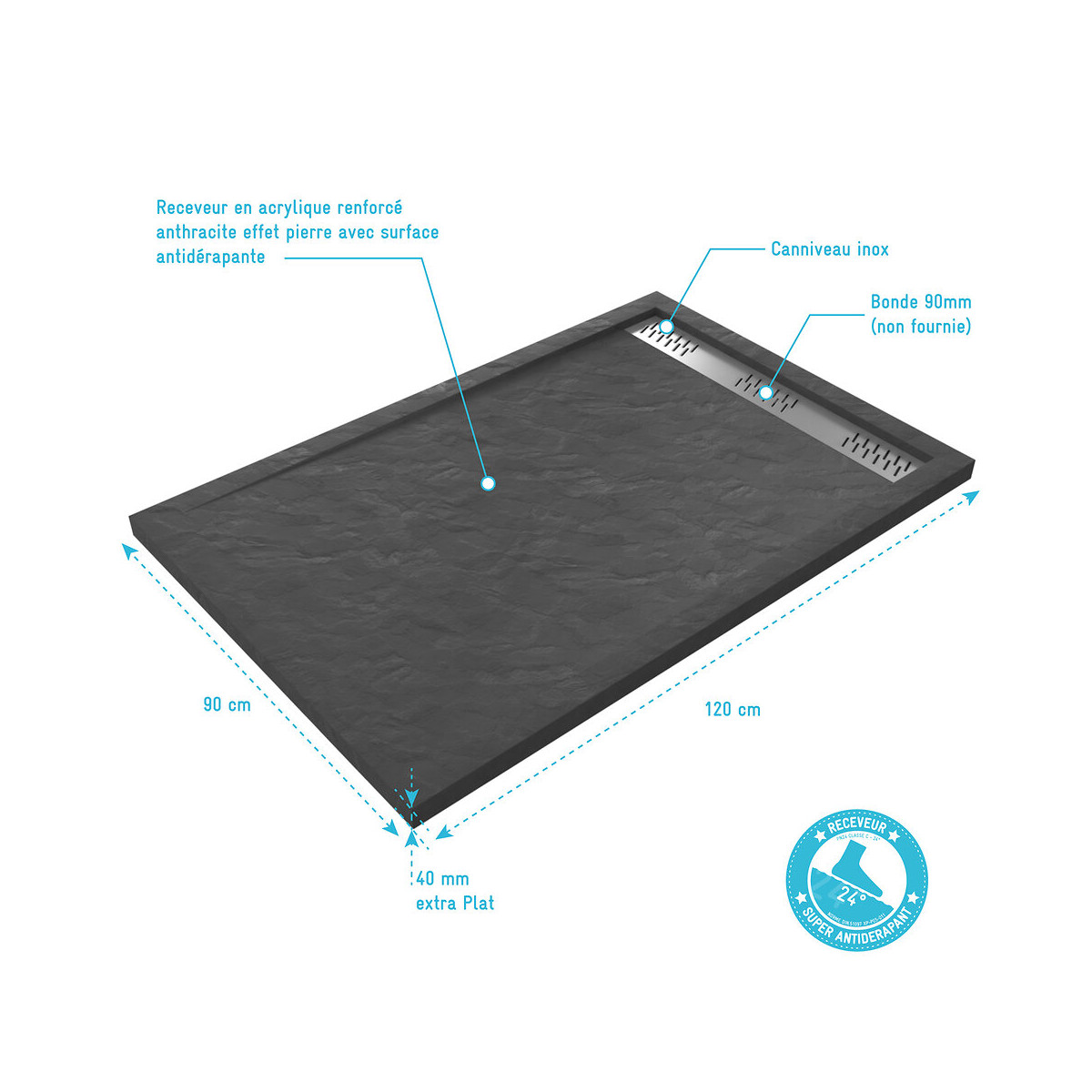 Receveur RECTANGLE METEORA RECTANGULAR LINEAR 120-90 écoulement linéaire Caractéristiques du receveur Receveur en acrylique renforcé gris effet pierre Evacuation linéaire Grille caniveau finition CHROME Faible épaisseur : 4cm Dimensions 120x90x4 cm Référence : FAC394 Désignation du produit: METEORA RECTANGULAR LINEAR Cocorico ! MyShowerRoom est une entreprise Française et toute la conception de nos produits est également Française. Ce qui est un véritable plus pour être au plus près de ses clients et avoir une meilleure connaissance de leurs attentes. Qui sommes nous L’HISTOIRE DE MYSHOWERROOM Nous avons créé MyShowerRoom en 2003 avec l’ambition de démocratiser le design et l’innovation dans la salle de bain pour faire de cette pièce un lieu à part entière, un véritable lieu d’histoires à vivre pour toute la famille. Nos cabines de douche et meubles de salle de bain dans l’ère du temps à des tarifs très accessibles. Nos nombreux brevets garantissent l’originalité de notre gamme de cabines de douches. Et nos ingénieurs mettent en œuvre tout leur savoir-faire et toutes les technologies innovantes au service d’une simplicité d’installation et d’utilisation incomparable pour tous. ÊTRE BIENVEILLANT AVEC NOS CLIENTS Notre service client a un objectif : rendre nos clients heureux. Pour cela nous veillons à répondre dans les 24h aux demandes clients. Mais aussi de toujours apporter une solution et entière satisfaction à nos clients. CONSTRUIRE DES PRODUITS TOUJOURS PLUS PERFORMANTS Nos ingénieurs, ainsi que nos équipes terrain consacrent tous leurs efforts à créer des produits adaptés à vos besoins, et toujours plus innovants grâce à nos technologies. Notre objectif est d’être votre unique interlocuteur pour tous vos projets de salle de bain. CONCRÉTISER LES RÊVES DE CHACUN Un projet de salle de bain ? Nous le réalisons ! Lieu de détente et de relaxation par excellence, la salle de bain est une des pièces maîtresse de la maison. Chez MyShowerRoom, nous mettons tout en oeuvre afin que ce rêve devienne réalité. PROPOSER UNE GAMME COMPLÈTE DE PRODUITS Nous vous proposons grâce à notre boutique en ligne une gamme complète de produits Made in MyShowerRoom pour équiper, et accessoiriser votre salle de bain. Un catalogue que nous renouvelons régulièrement avec les dernières technologies MyShowerRoom. APPORTER UNE EXPERTISE HUMAINE Parce que l’humain passe avant tout, nous travaillons avec les meilleurs experts. La satisfaction de nos clients est notre seule et unique priorité. Chaque problème a une solution, et c’est dans cette optique que nous avons mis en place un chat pour échanger directement avec nos équipes. NOTRE CENTRE LOGISTIQUE 11 000 m² d’entrepôt 7000 palettes en stock 1 800 colis traités par jour Plus de 260 préparations de commandes quotidiennes 12 quais de chargement/déchargement CONSEILS & VENTES Une équipe disponible 5 jours sur 7 pour vous accompagner dans vos achats. LIVRAISON GRATUITE Pour toute commande sur le site MyShowerRoom, la livraison est gratuite dans toute la France. UNE GARANTIE DE QUALITÉ Grâce à nos produits brevetés vous bénéficiez de produits uniques. Garantie 2 ans pièces et non main d'oeuvre. Référence produit: FAC394 Retrouvez plus d'informations produit et des conseils de montage sur le site Aurlane. Remarques importantes: Ces colis sont volumineux, la livraison est effectuée par transporteur spécialisé en bas de chez vous. Les chauffeurs ne sont pas habilités à porter la marchandise, mais uniquement à la décharger. Pas de livraison à l'étage. L'adresse de livraison doit être accessible en camion poids lourd. Dans le cas contraire la marchandise sera mise à disposition au dépôt le plus proche (distance non garantie). Les rendez-vous sont gérés directement par les transporteurs. Attention à bien contrôler la marchandise à réception pour éviter tous litiges.