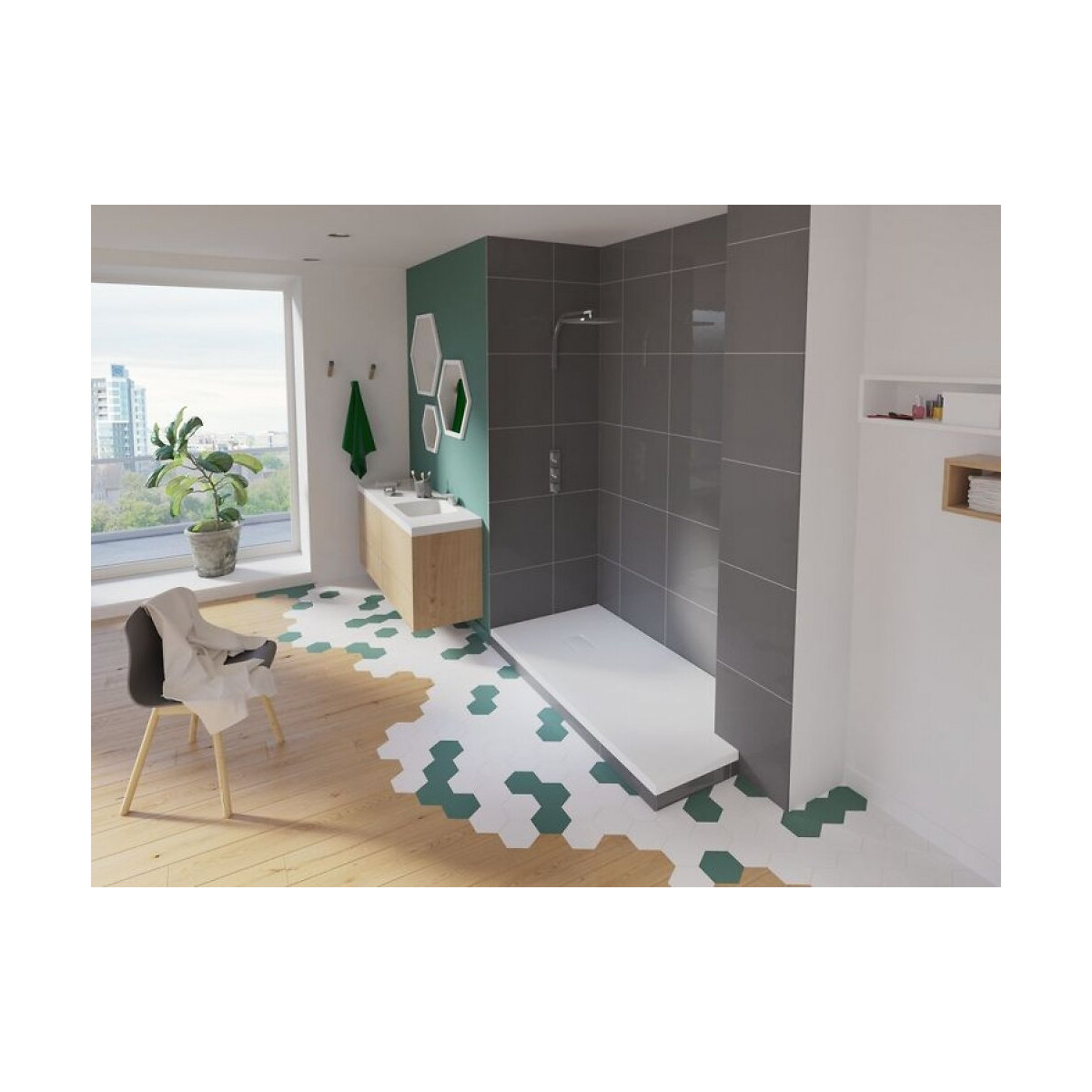 Avantages du receveur de douche recoupable Kinedo Kinesurf Léger mais résistant, donc facile à manipuler Recoupable sur les 4 côtés pour une adaptation parfaite Design, avec son cache-bonde assorti Disponible en 16 dimensions, version antidérapante ou non, en fonction des besoins, de toutes les salles de bain Caractéristiques du receveur de douche recoupable Kinedo Kinesurf Matériau : biotec et surface en biocryl thermoformée Type de pose : à poser ou à encastrer Hauteur du receveur : 4 cm Bonde extra plate pivotante à 360 (25 L/min) 2 types d adhérence : receveur classique PN6 blanc brillant et receveur antidérapant classe C, PN 24, aux normes PMR, blanc mat Cache bonde en biocryl blanc assorti avec le receveur, en inox renforcé Bonde centrée sur la largeur ATTENTION : respecter les zones de découpe maximum recommandées par Kinedo sur la fiche technique (maxi 15 cm sur les 3 côtés autour de la bonde et 25 cm sur le côté opposé à la bonde). Fiche technique disponible pour plus d informations.
