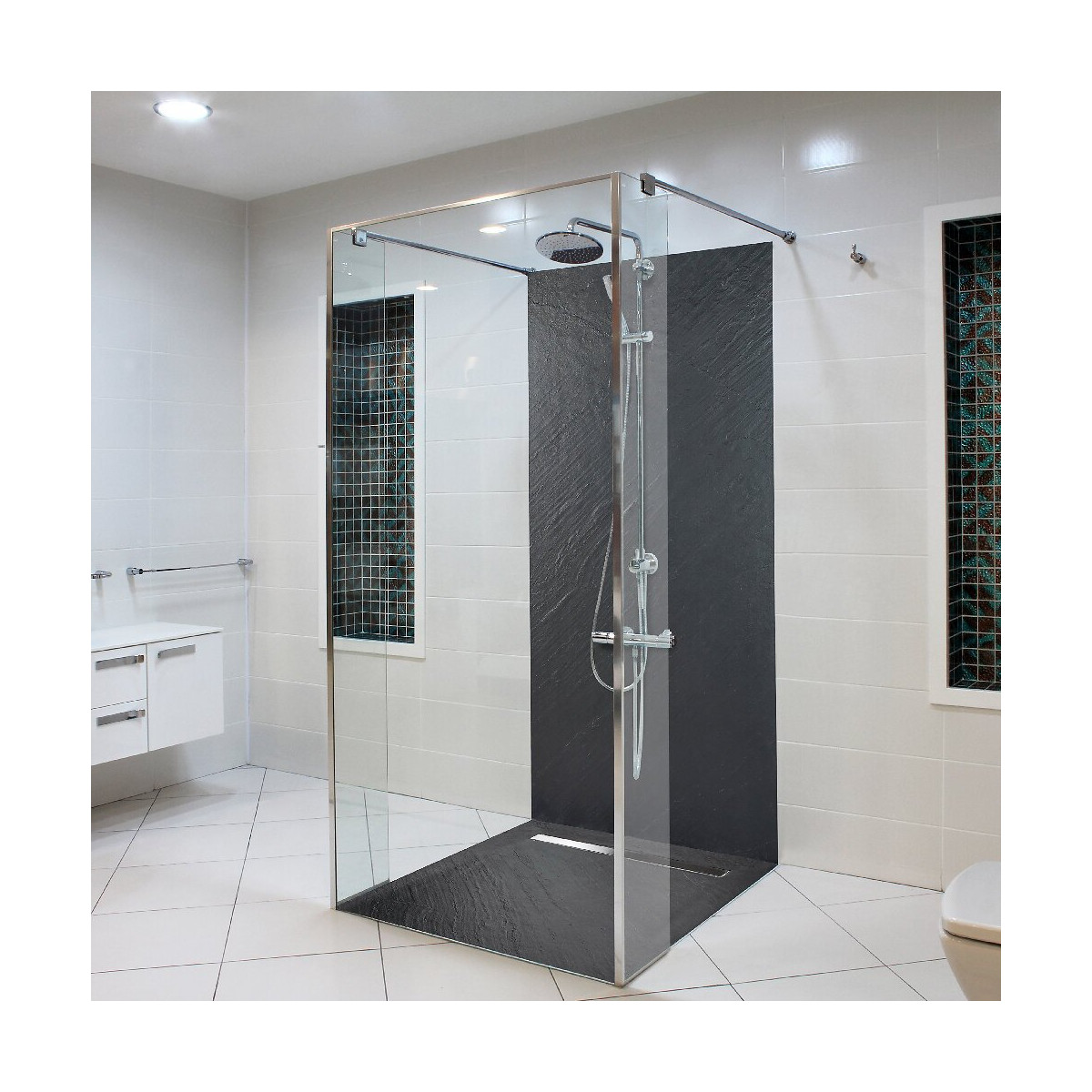Receveur De Douche Caniveau En Pierre Naturelle 185 X 90 Cm Graphite Noir + Natte Étanche + Siphon Ultra Plat
