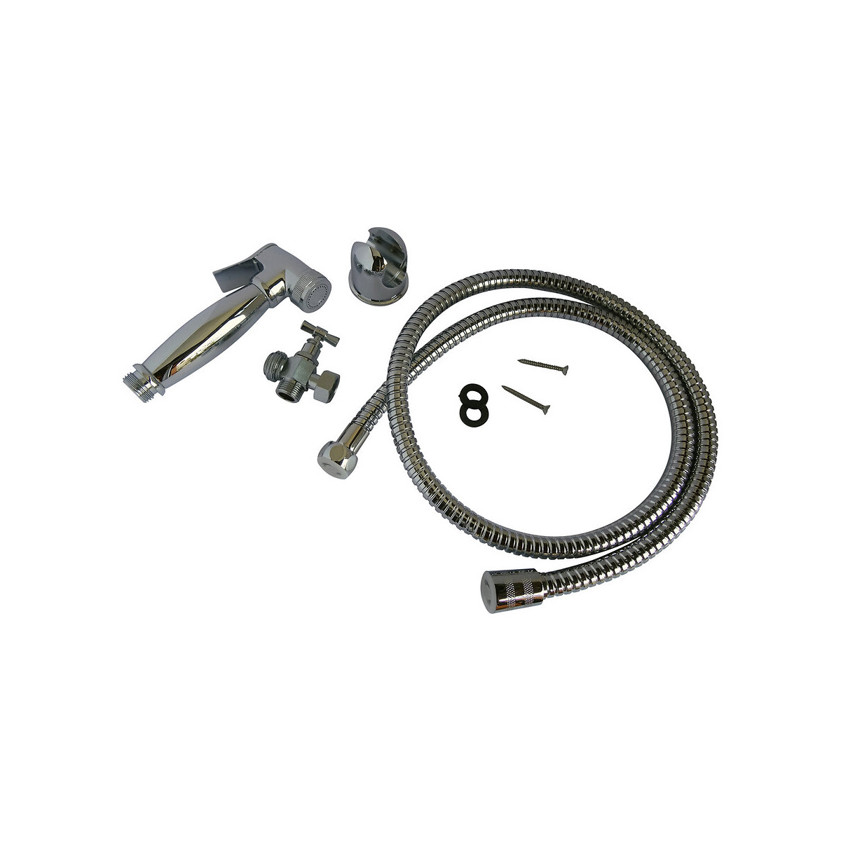 Ce kit hygiène WC s'installe sur un WC à poser pour ajouter une douchette avec flexible sanitaire sans modifier l'installation existante. Le robinet 3 voies founi s'installe en lieu et place du robinet d'alimentation du WC. Ce kit comprend le nécessaire d'installation (support douchette, joints)