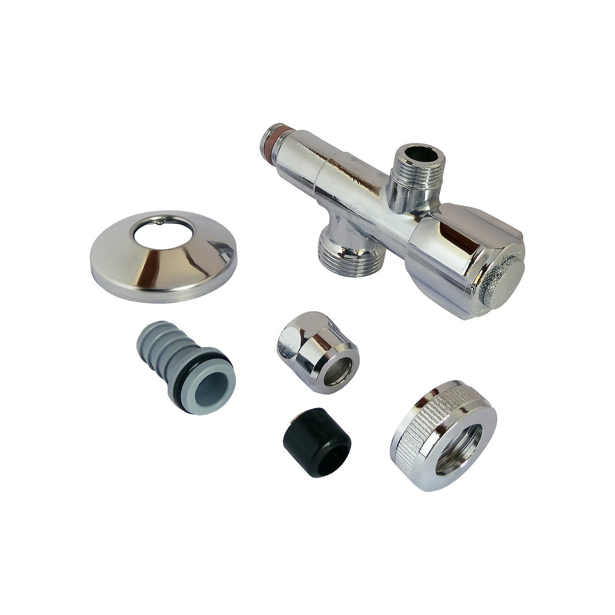 Robinet équerre pour branchement lave-linge, lave-vaisselle. Raccordement : DN15 - M15/21 x Ø10 x Ø14,5 (nez)