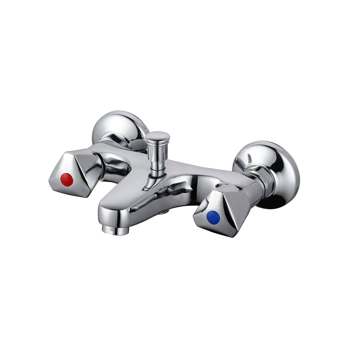 Mélangeur bain-douche mural chromé Têtes à clapet guidés Entraxe 150mm Raccords excentriques et rosaces Inverseur automatique sur le becSpécifications techniques
