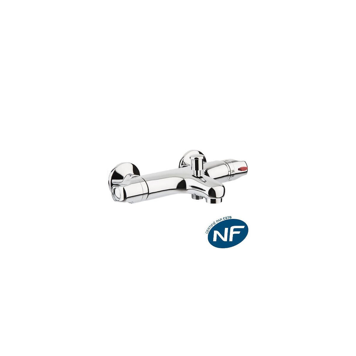 Mitigeur thermostatique Bain douche Cali NF Descriptif produit: Couleur : Chromé Type de produit : Bain Douche Finition du produit : Brillant Compatibilité : Toute production d'eau chaude Mécanisme : Cartouche senseur Vernet Matière de la poignée : Métal Limiteur de température : oui Sécurité anti-brûlure avec butée à 38°C Entraxe : 150 +/- 20 mm. Largeur : 280 mm. Rosaces + raccords excentriques M1/2' - M3/4'. Vendu sans pommeau ni flexible de douche Vidage Non fourni Dimensions du mitigeur Longueur 280 mm Largeur 210 mm Hauteur 80 mm