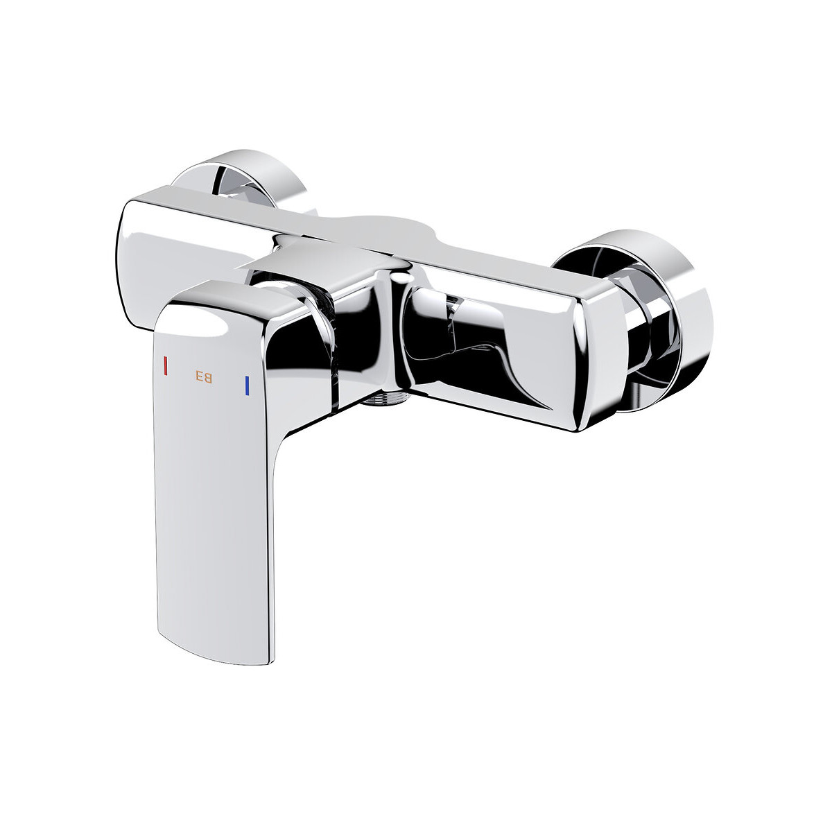 Mitigeur douche mural chromé Corps entraxe 150 mm Cartouche céramique diamètre 35 mm Manette métal pleine Fourni avec raccords S et rosacesSpécifications techniques